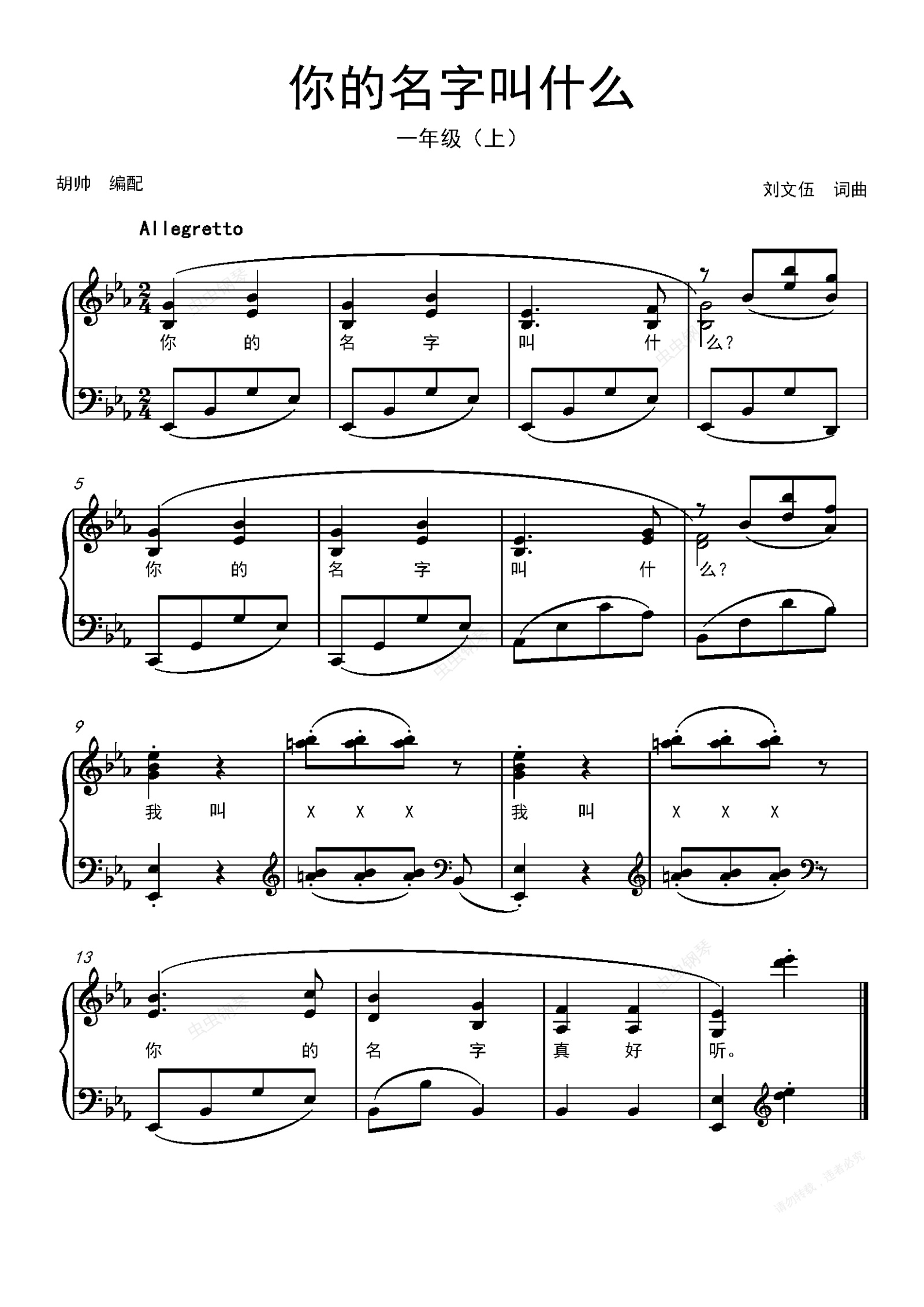 钢琴谱:你的名字叫什么【人音版一年级】