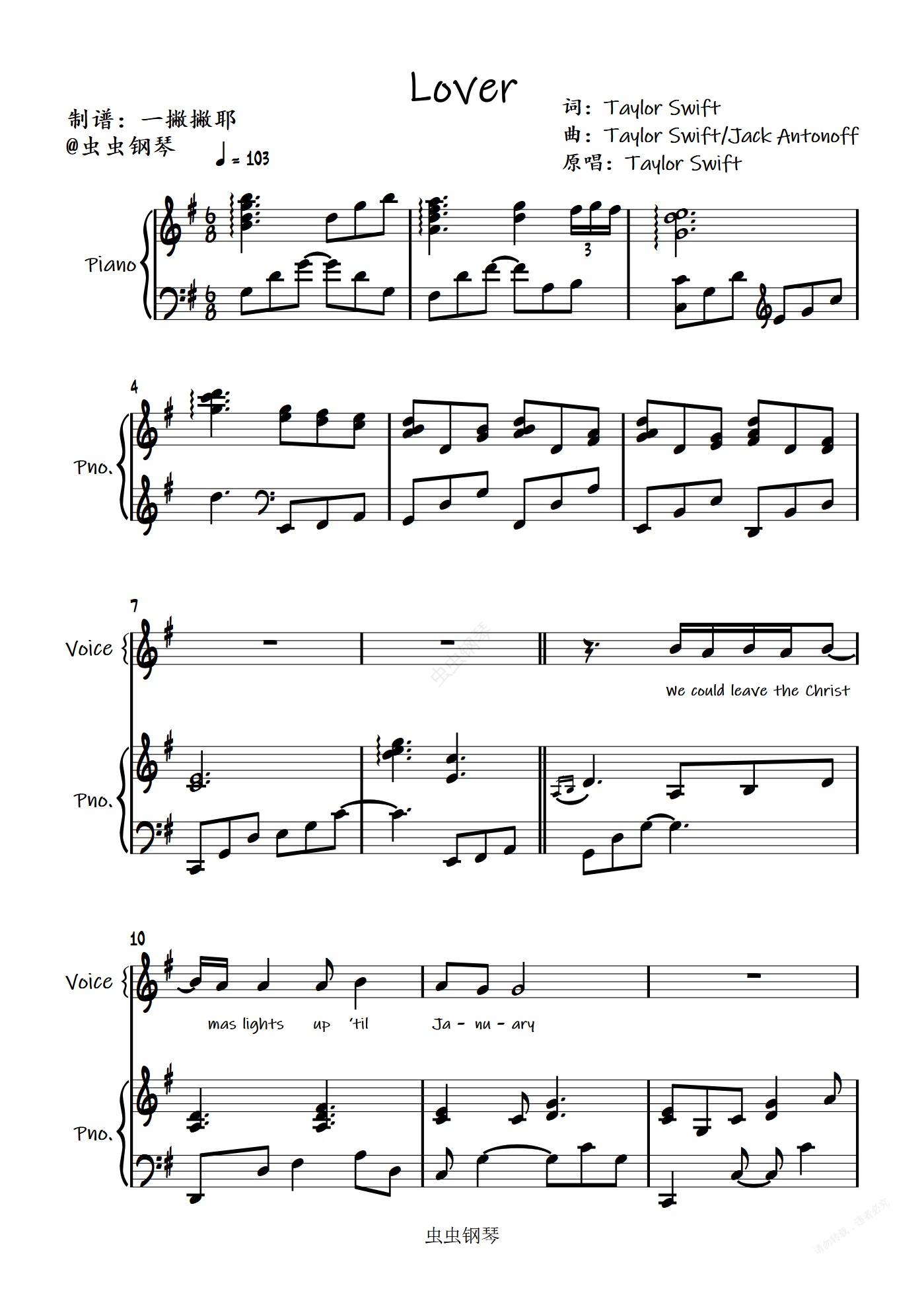 钢琴谱:【唯美弹唱】Lover-Taylor Swift 泰勒·斯威夫特「一撇撇耶」