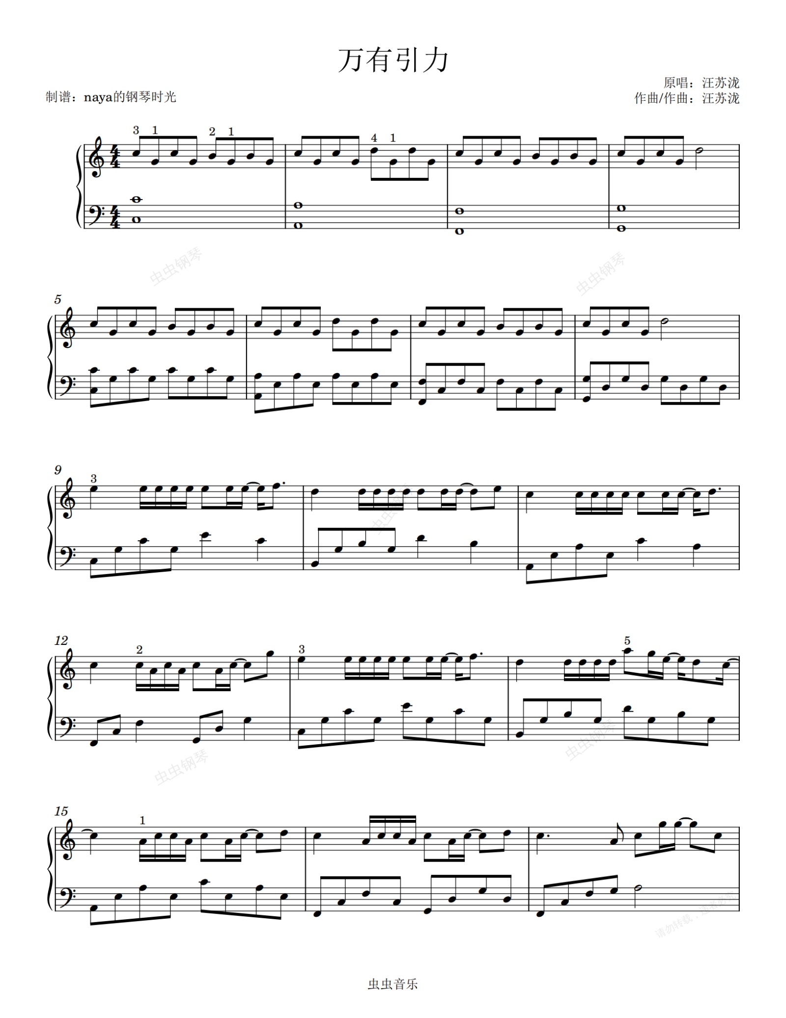 钢琴谱:万有引力-汪苏泷-C调简单好听