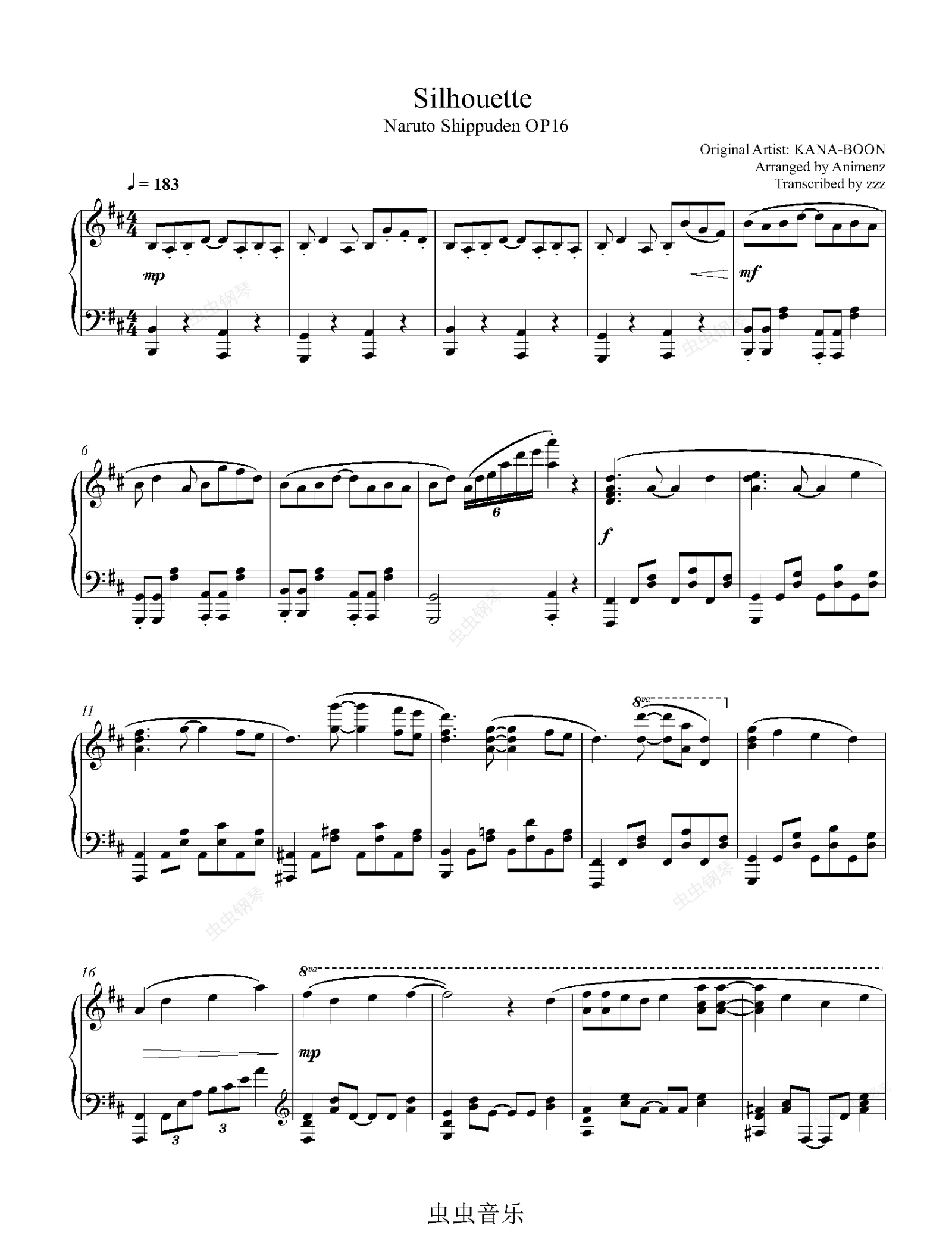 钢琴谱:Silhouette 火影忍者疾风传 op16