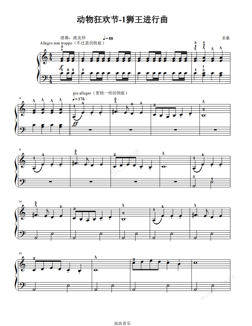钢琴谱:动物狂欢节--1引子与狮王进行曲
