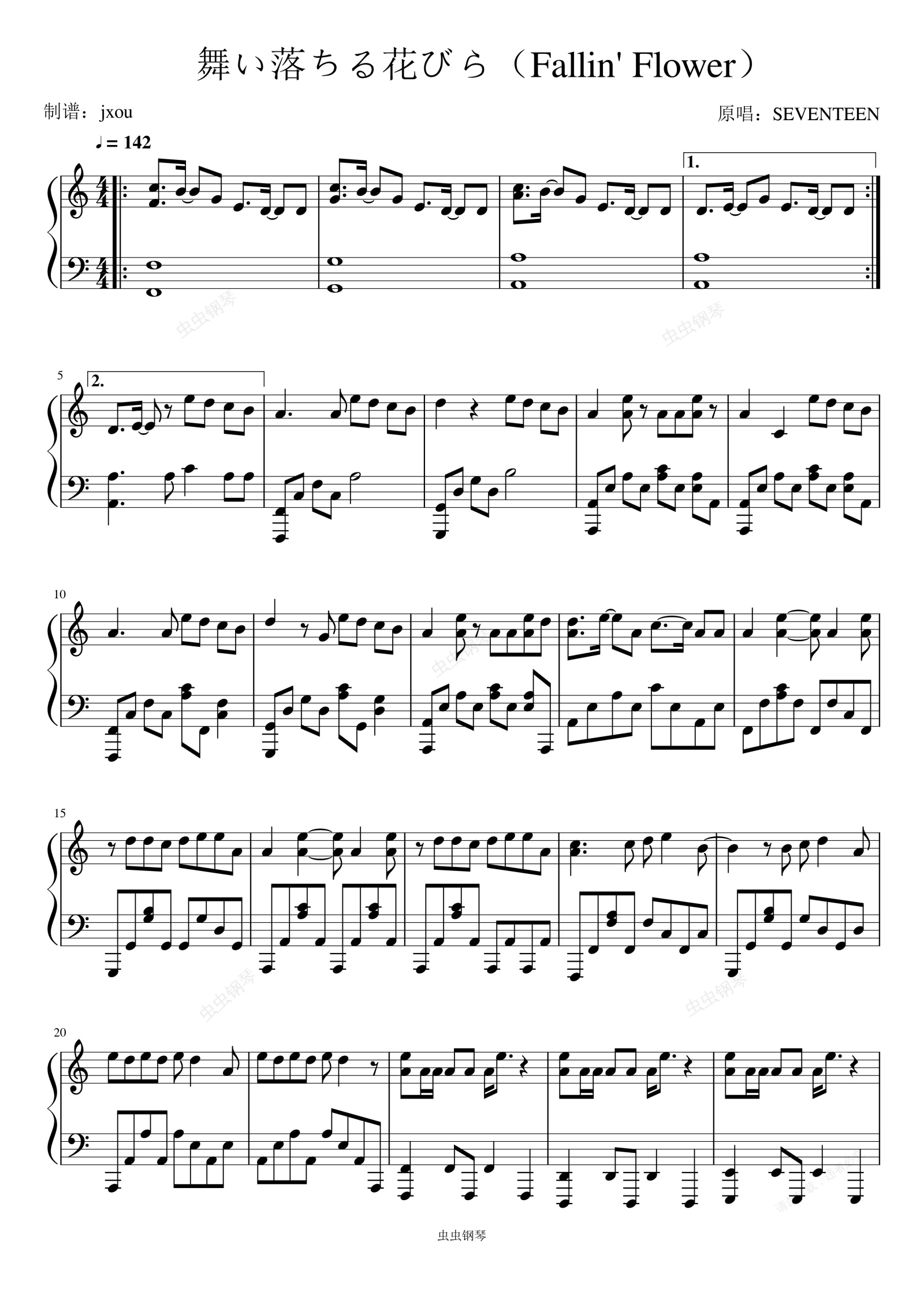 钢琴谱:舞い落ちる花びら(Fallin Flower)- Seventeen 完美独奏版