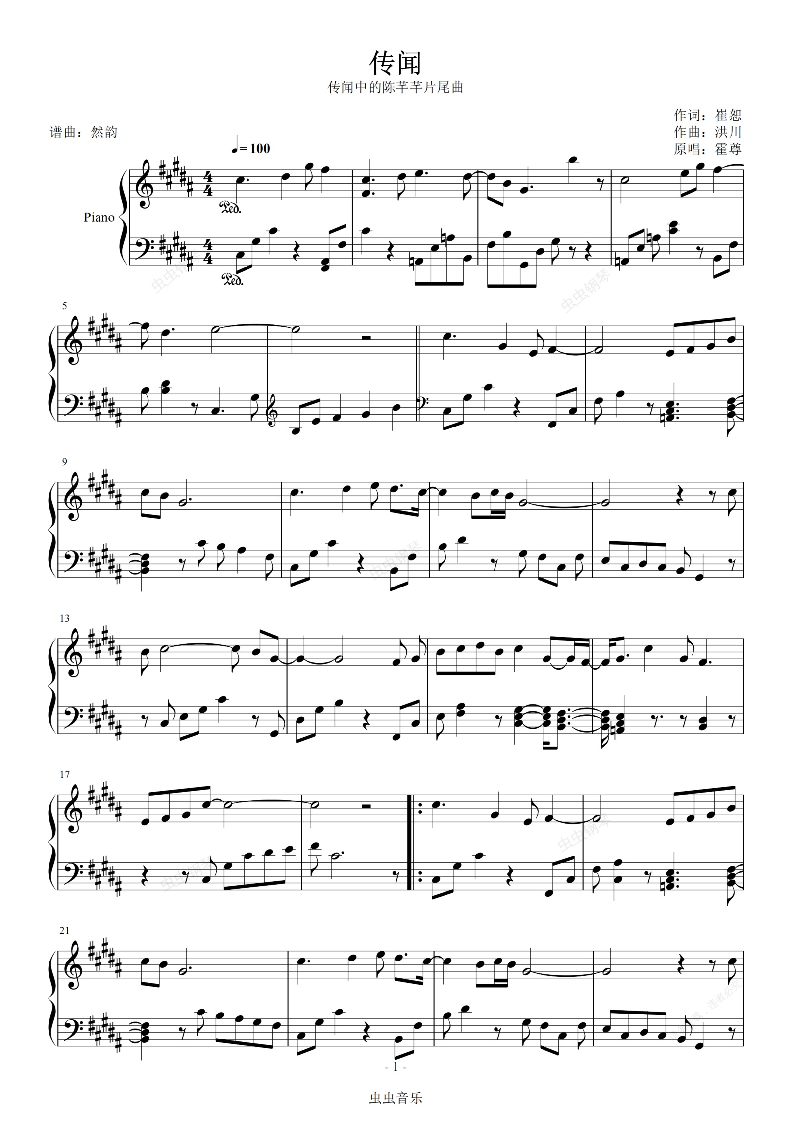 钢琴谱:传闻 《传闻中的陈芊芊》片尾曲
