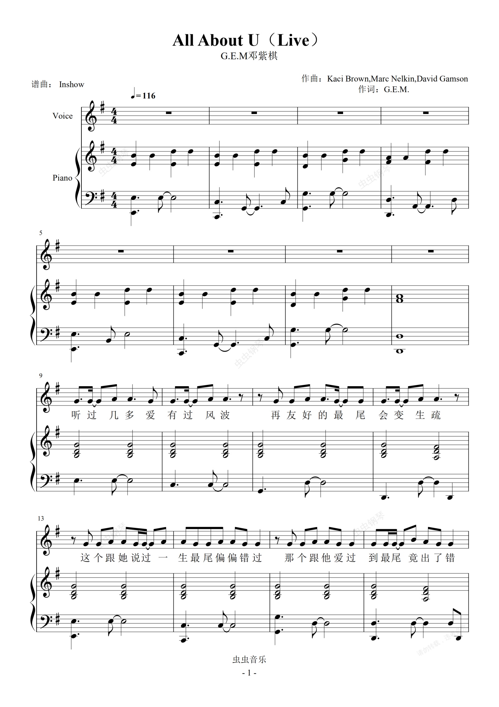 钢琴谱:G.E.M.邓紫棋 - All About U(Live)【弹唱谱】