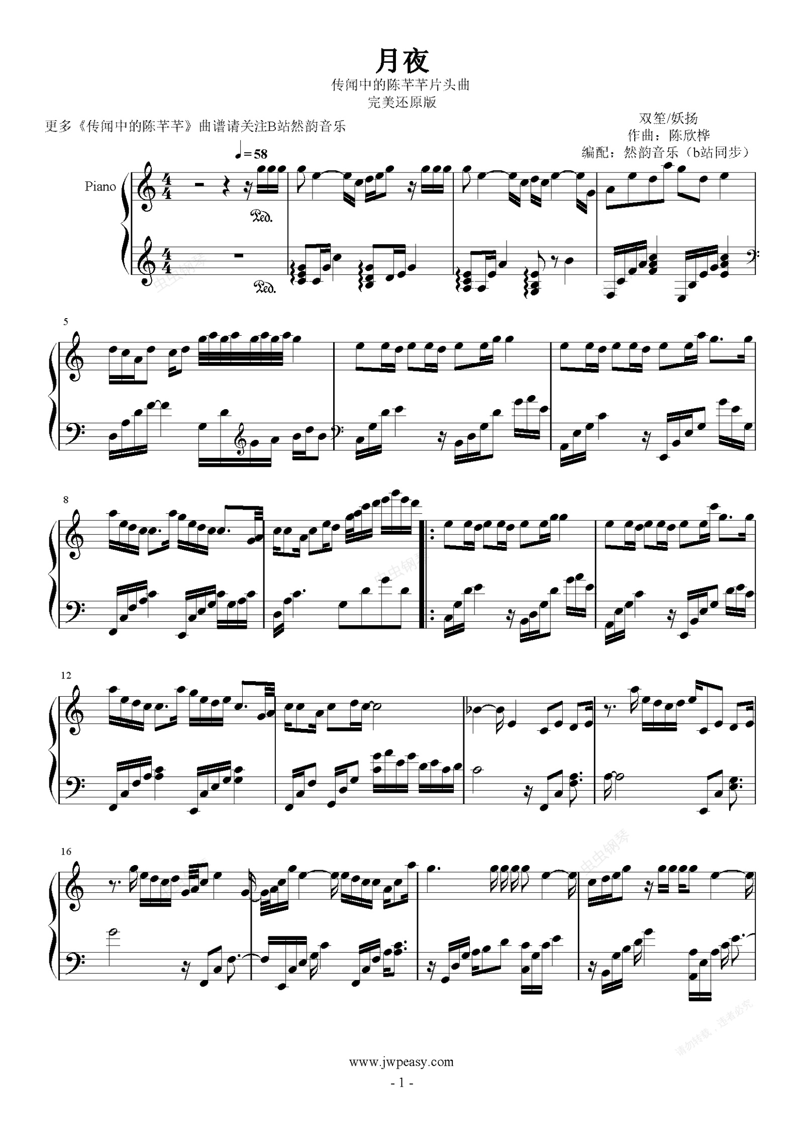 钢琴谱:月夜 极致还原版 《传闻中的陈芊芊》片头曲