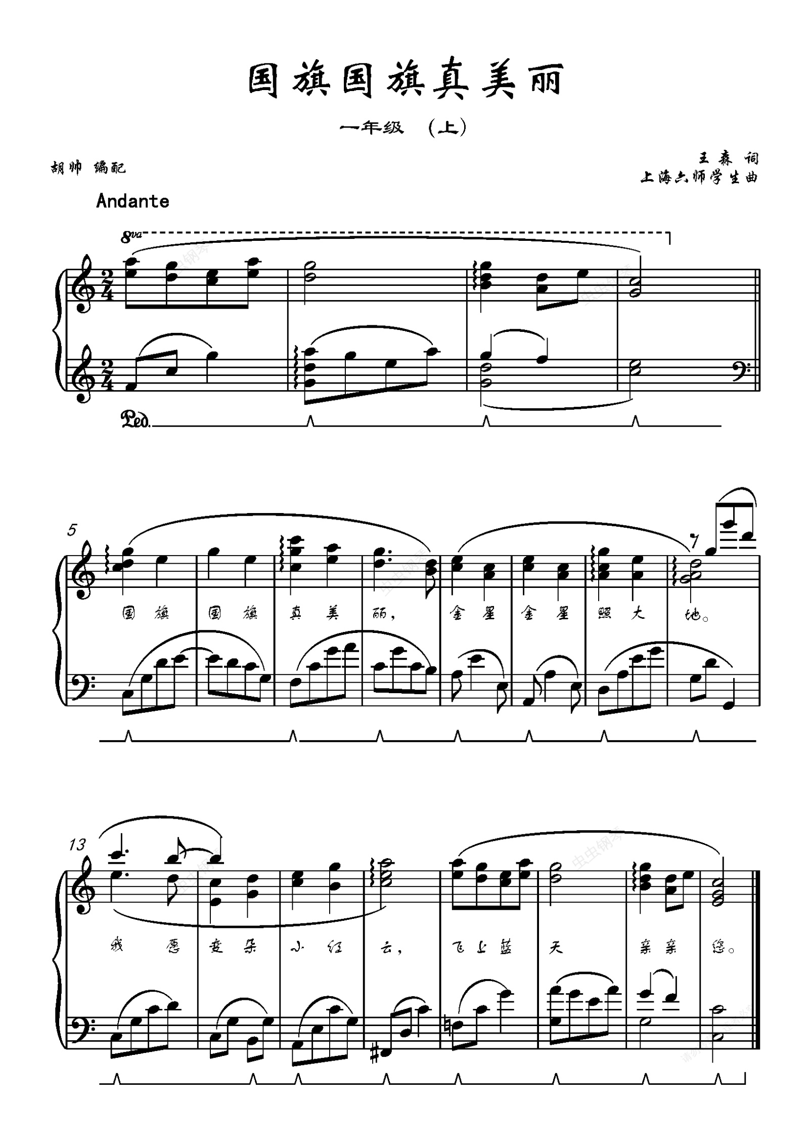 钢琴谱:国旗国旗真美丽【人音版一年级】