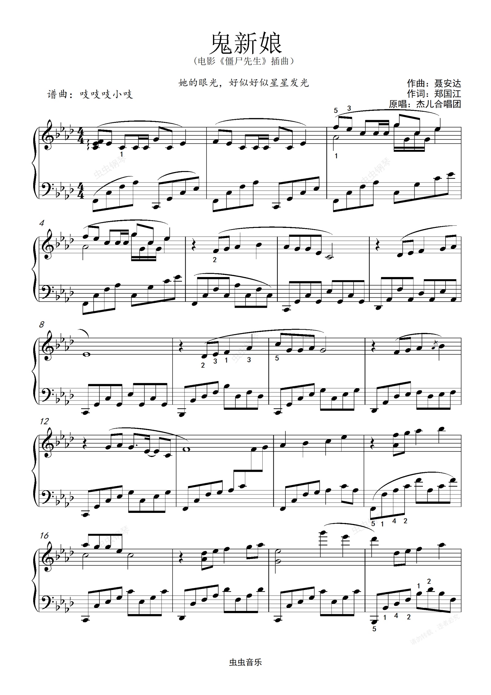 钢琴谱:鬼新娘柔美版(《僵尸先生》插曲)