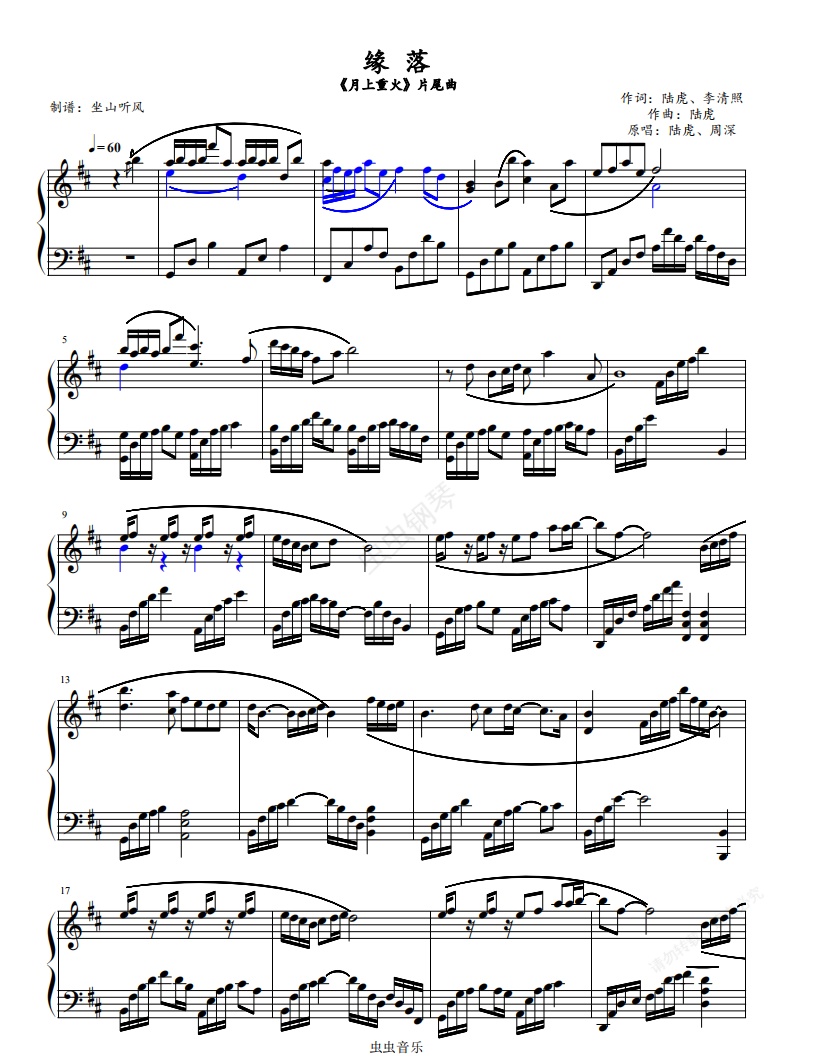 钢琴谱:缘落——《月上重火》片尾曲