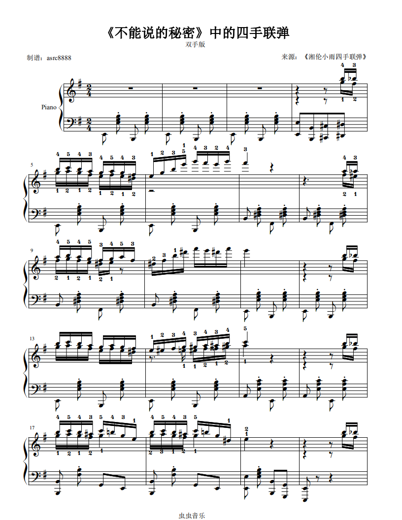 钢琴谱:《不能说的秘密》四手联弹