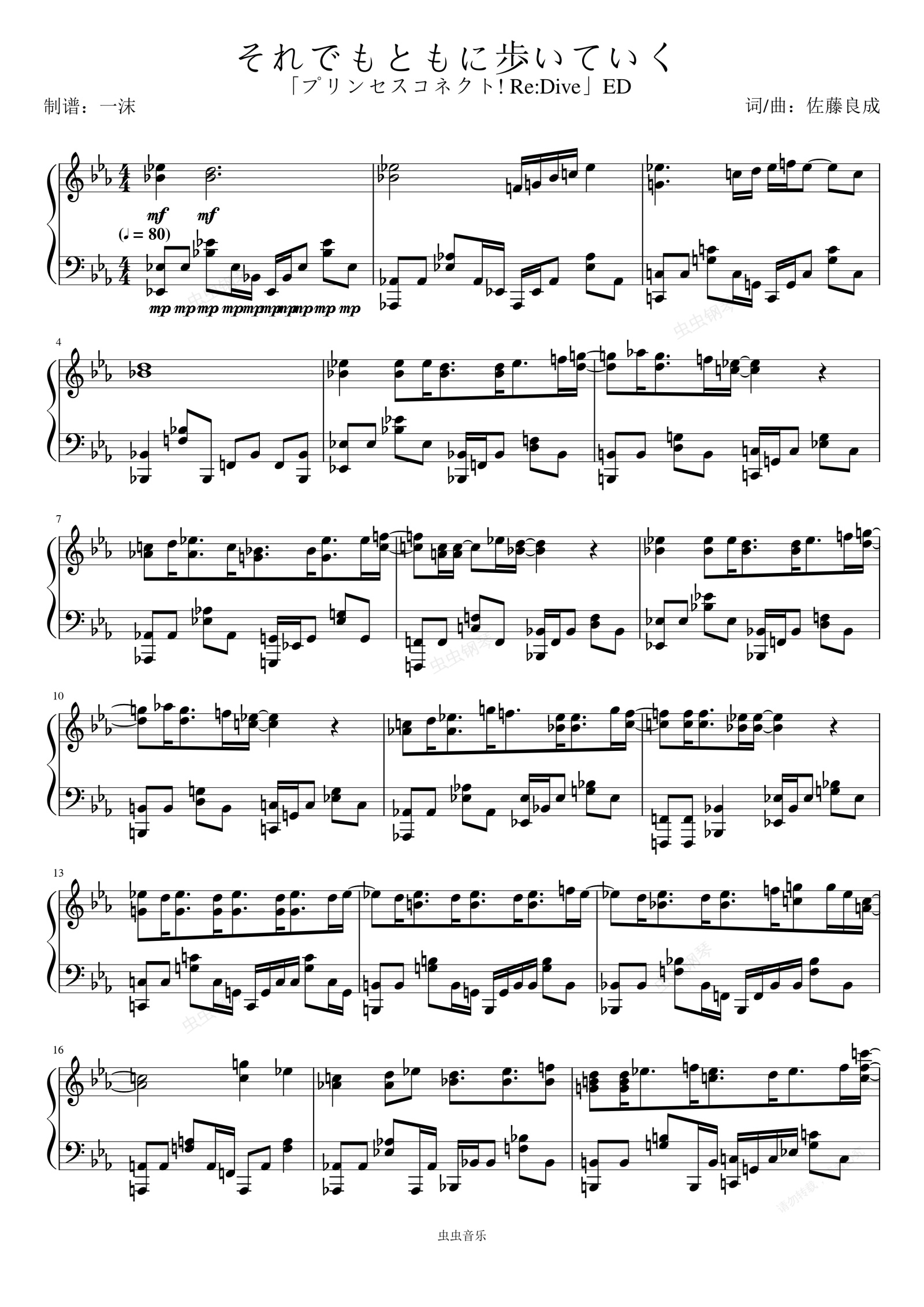 钢琴谱:それでもともに歩いていく(公主连结ED )高质量 独奏
