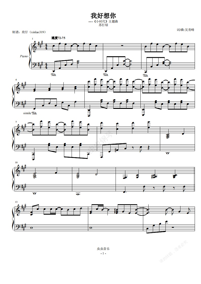 钢琴谱:我好想你-《小时代》主题曲(精编优化)