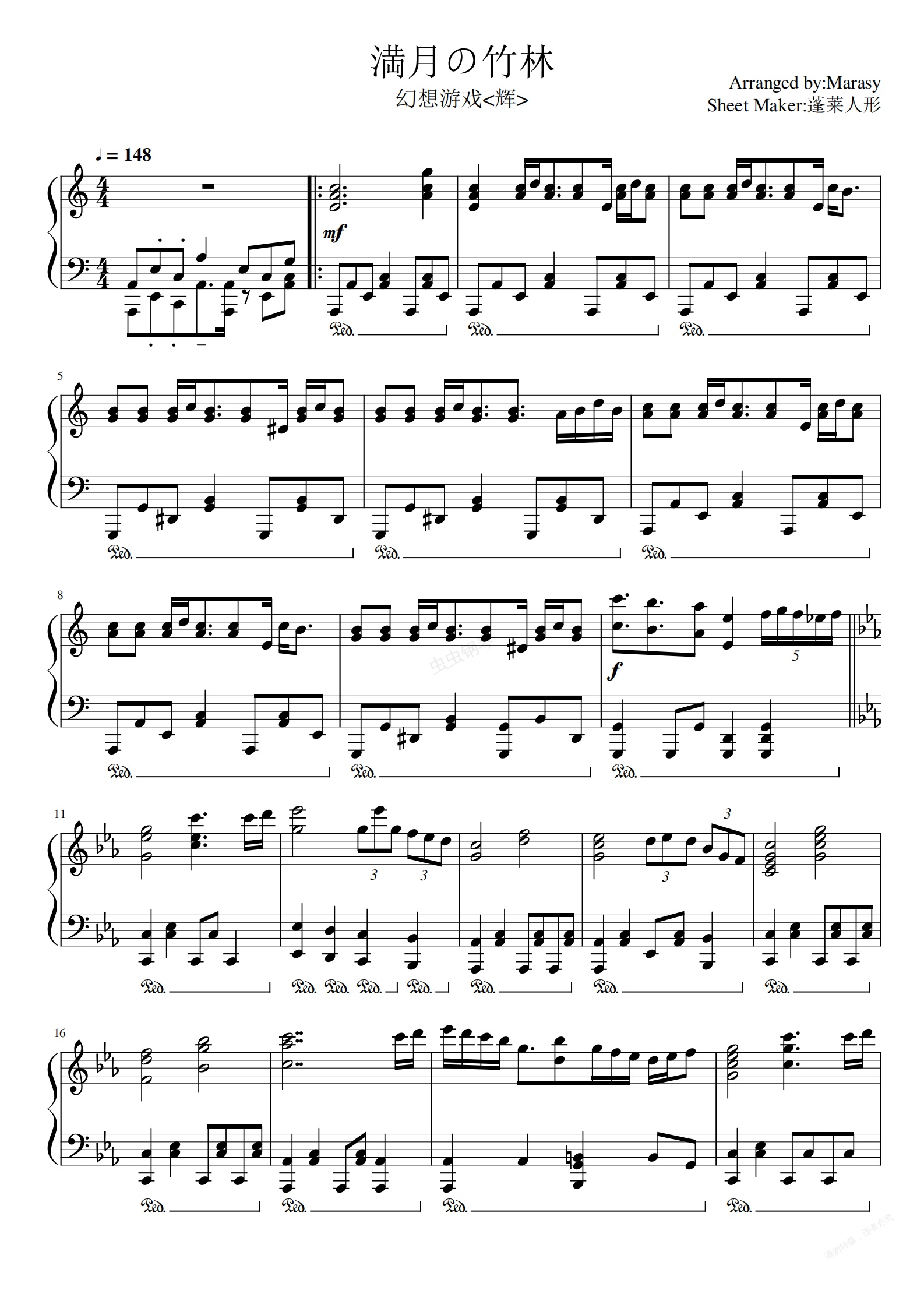 钢琴谱:【东方辉针城】【触手猴】满月的竹林<辉>