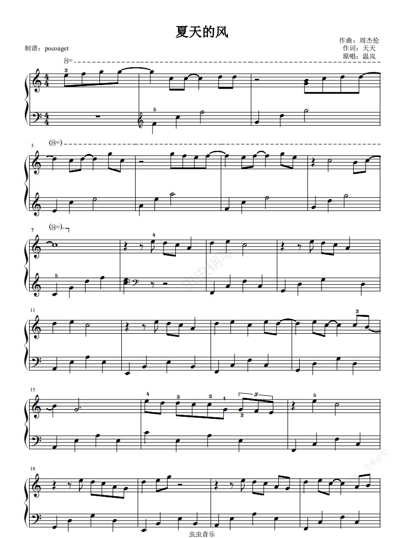 钢琴谱:夏天的风(poc编配)初学者完美版