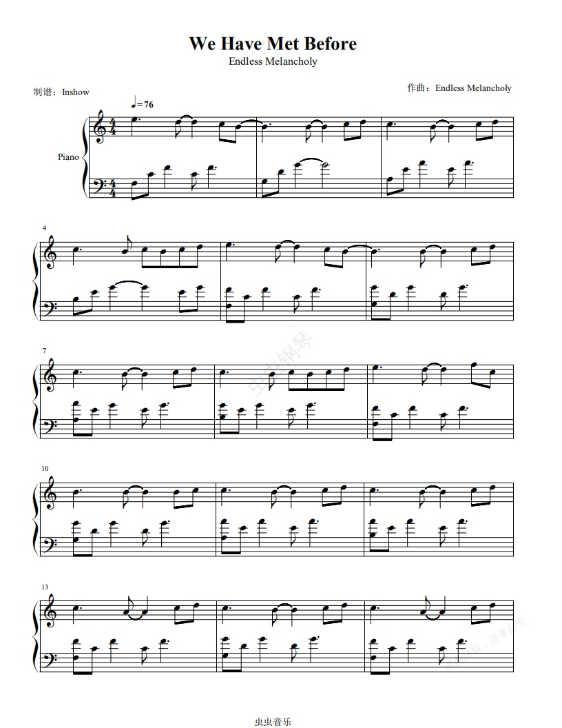 钢琴谱:Endless Melancholy - We Have Met Before【纯音乐钢琴谱】