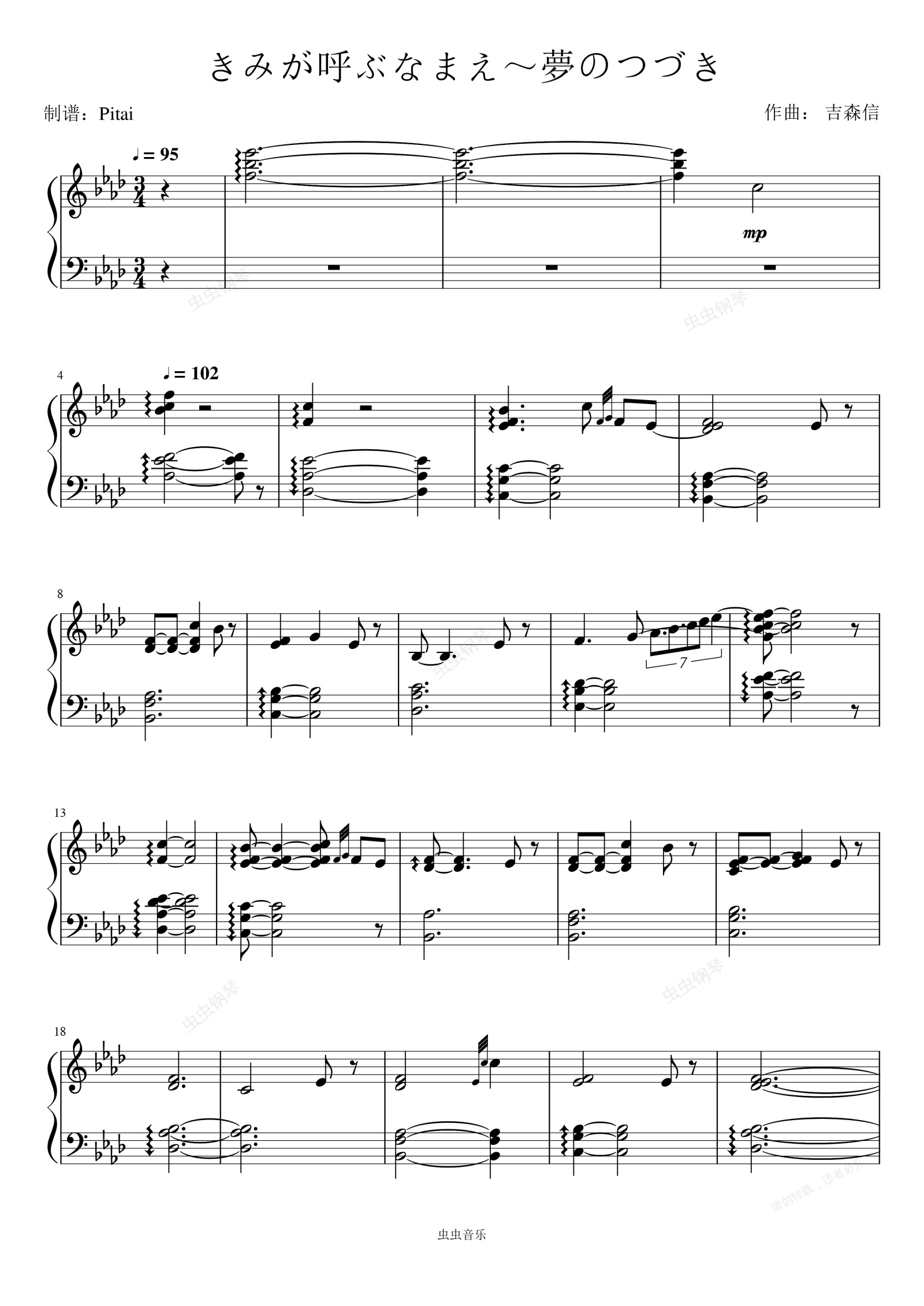 钢琴谱:夏目友人帐OST《きみが呼ぶなまえ~夢のつづき》 以你的名字呼唤【精制完整版】