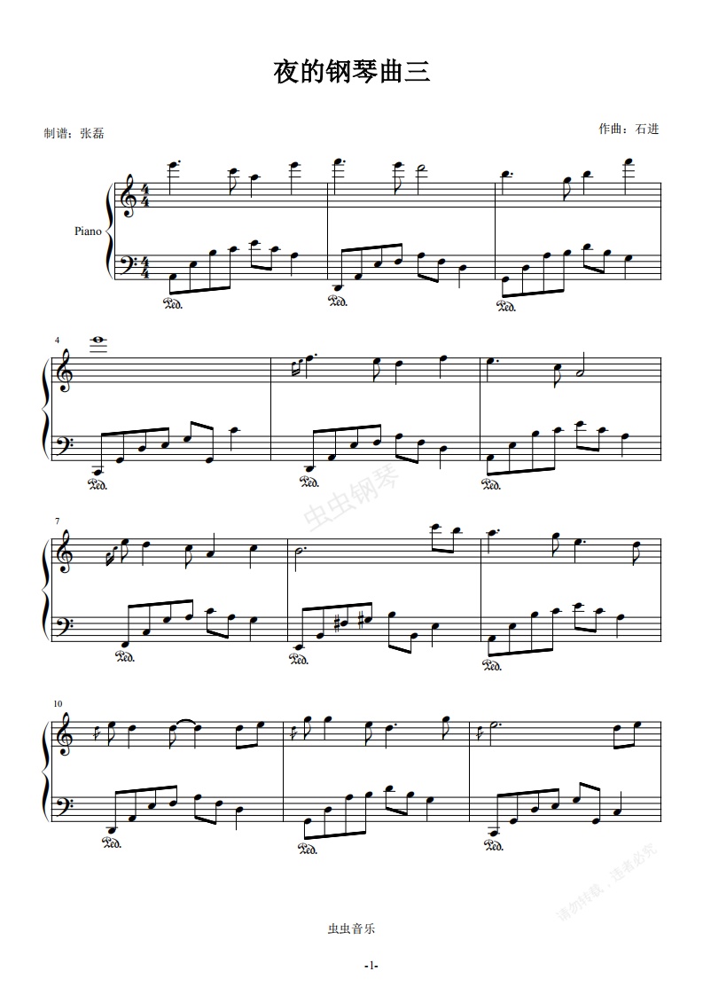 钢琴谱:夜的钢琴曲三 石进---C大调