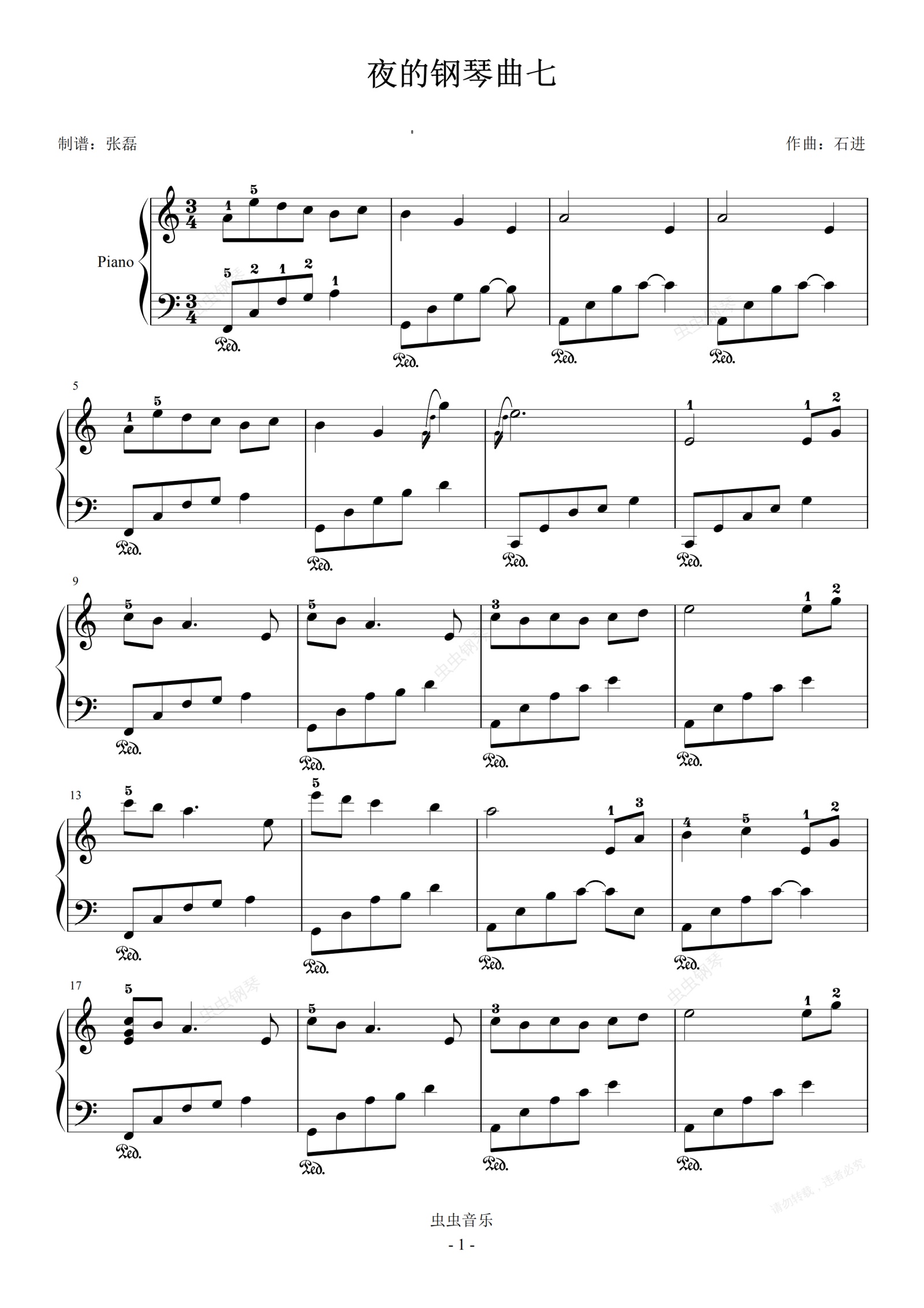 钢琴谱:夜的钢琴曲七---石进---C大调