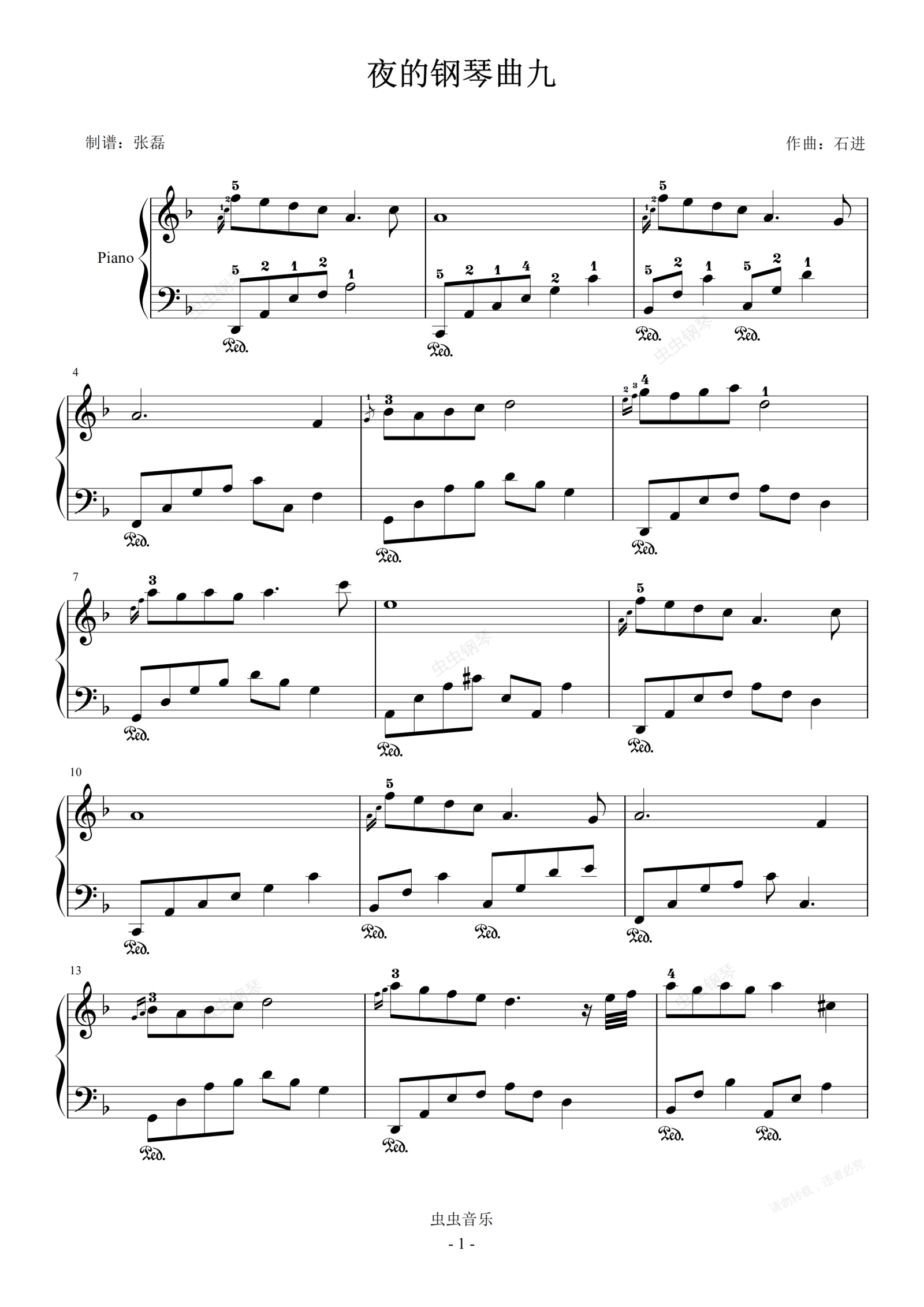 钢琴谱:夜的钢琴曲九---石进---F大调