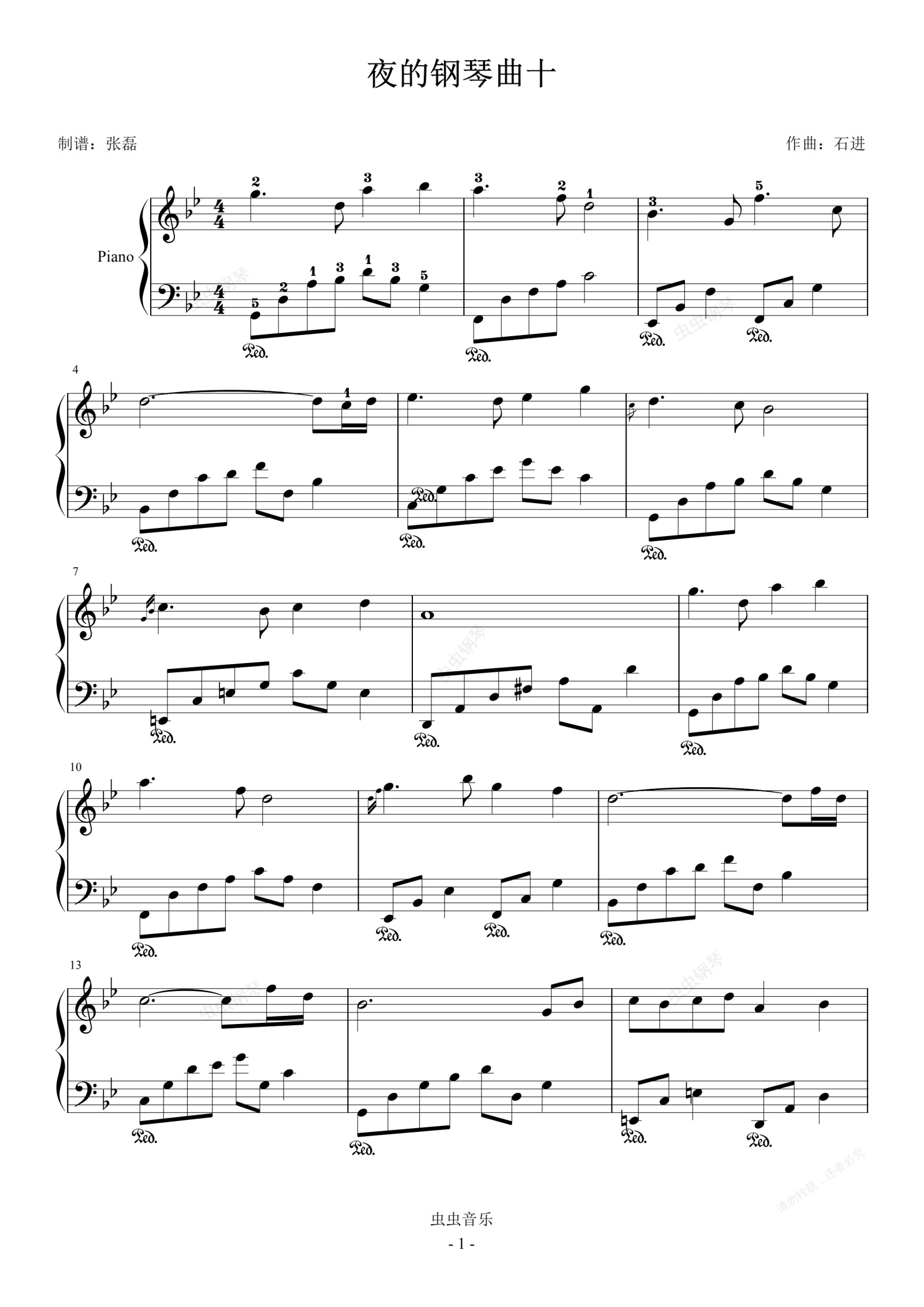 钢琴谱:夜的钢琴曲十--石进--降B大调