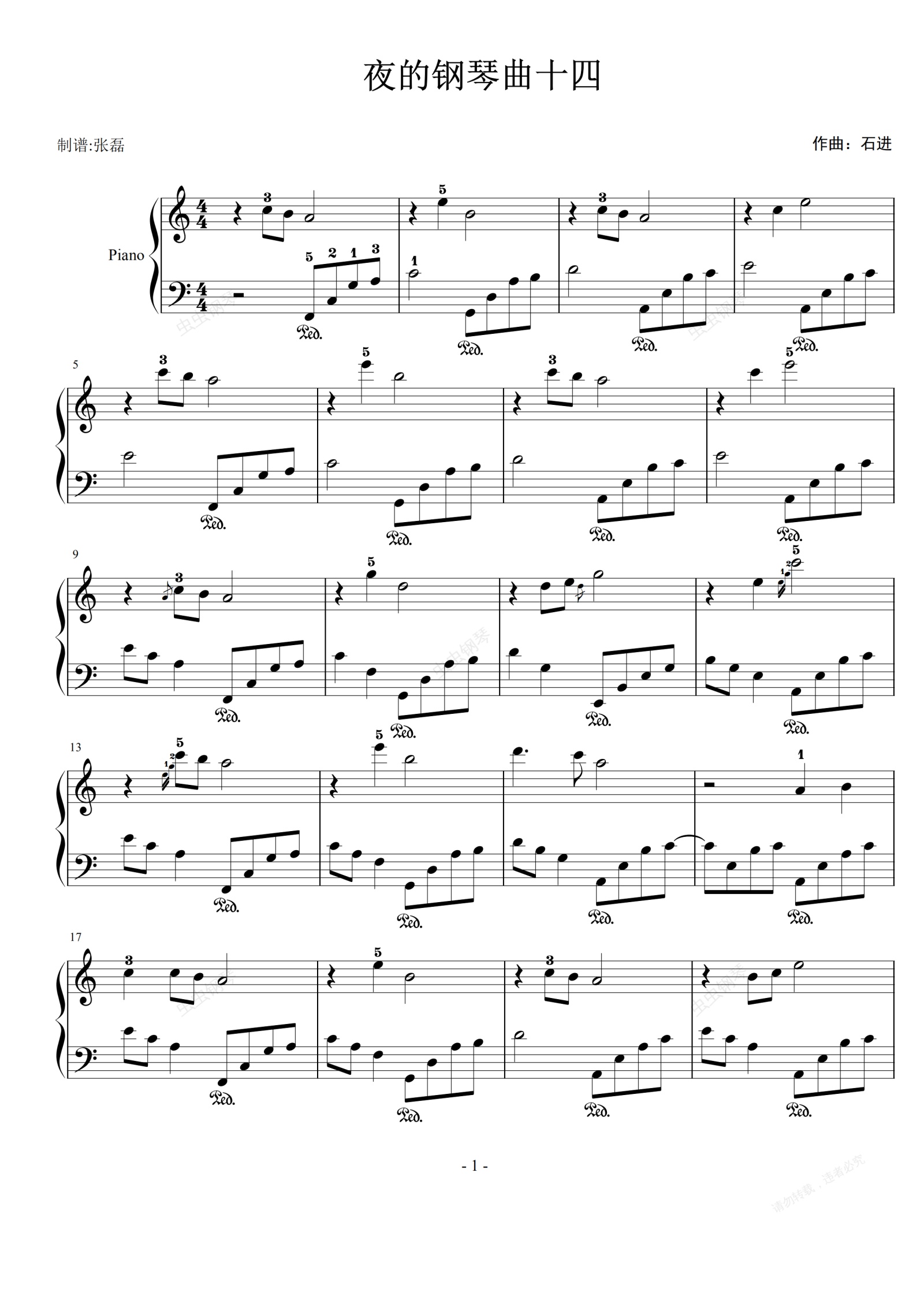钢琴谱:夜的钢琴曲十四--石进--C大调