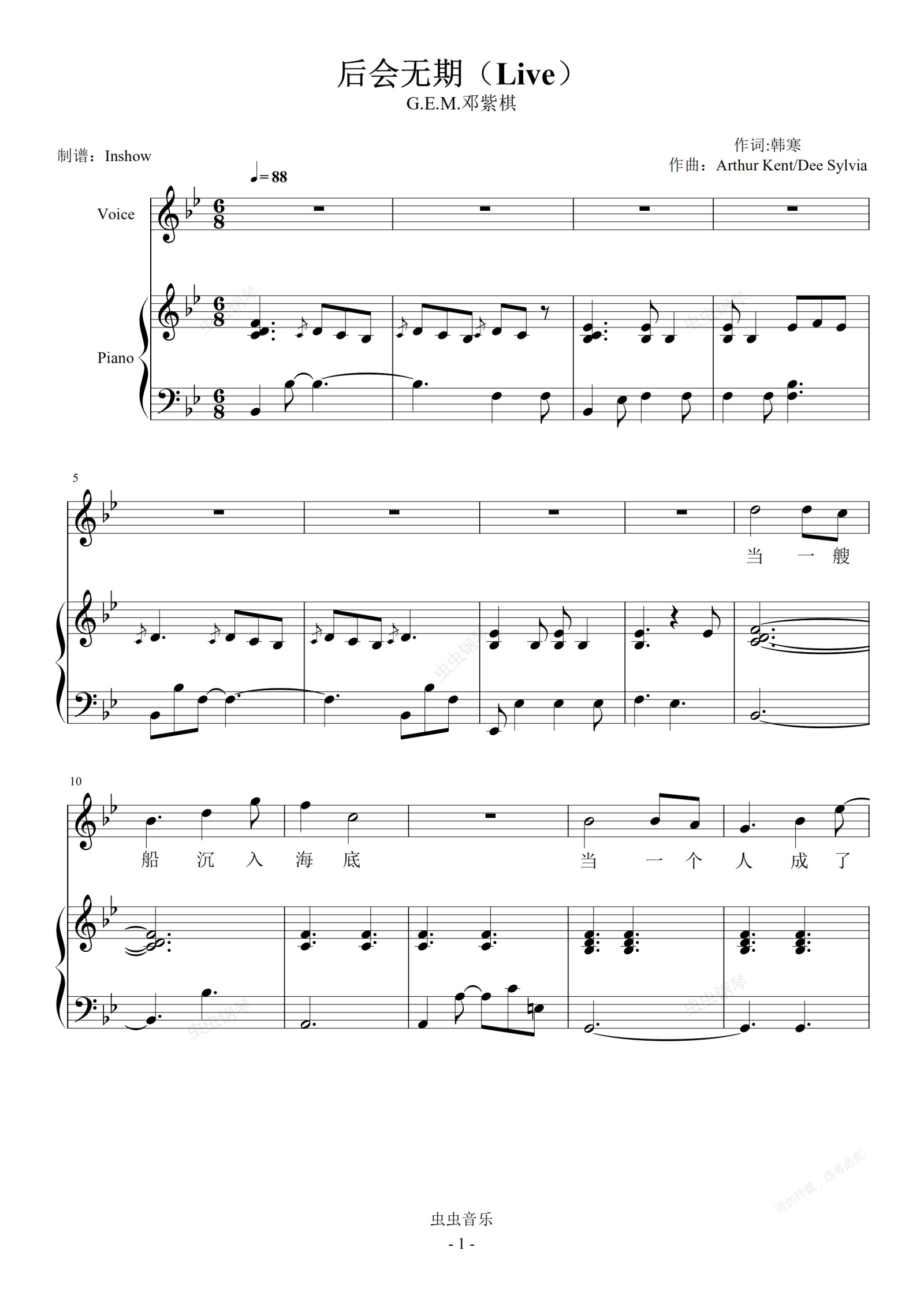 钢琴谱:G.E.M.邓紫棋 - 后会无期(Live)【弹唱谱】