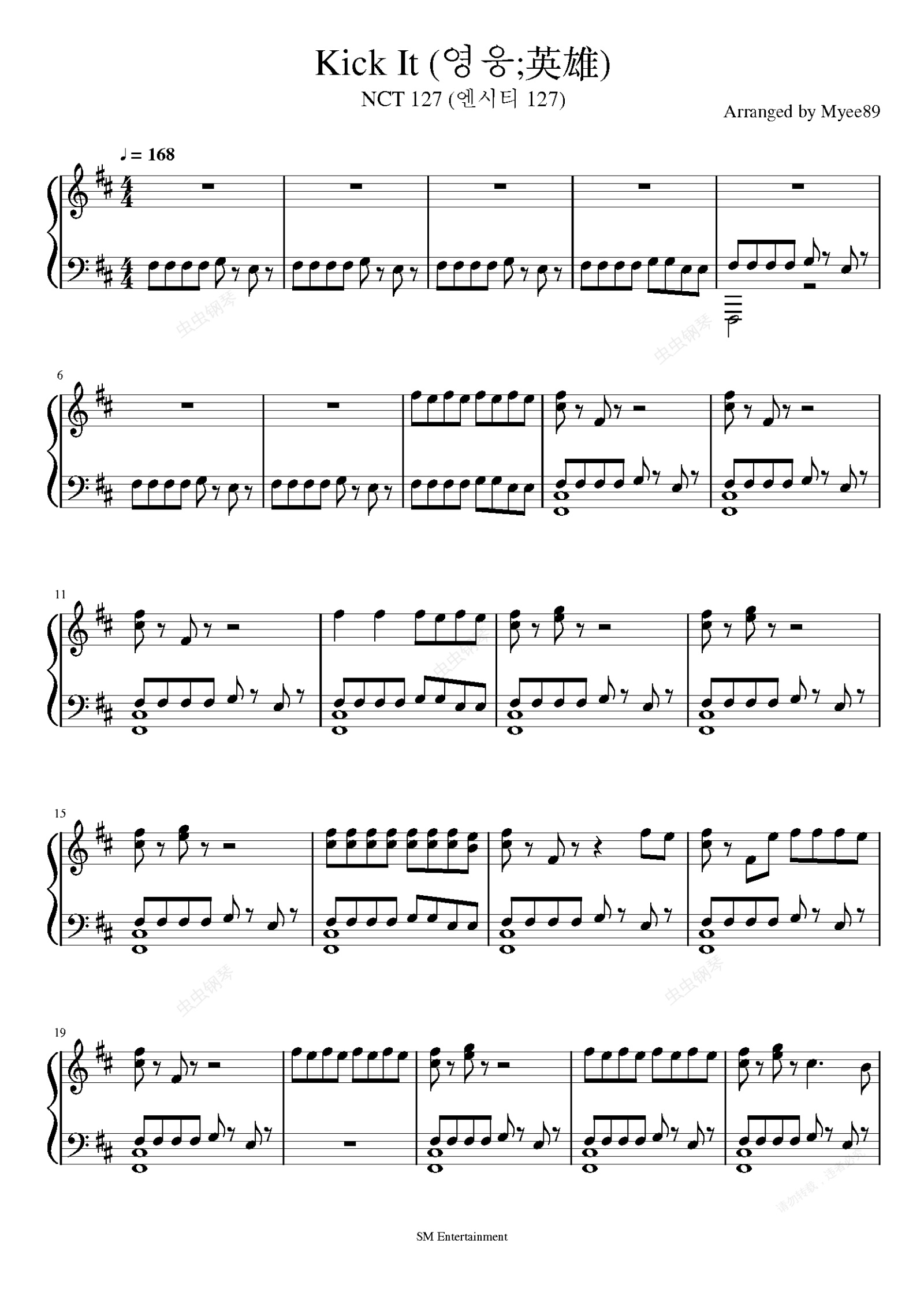 钢琴谱:NCT 127 - Kick It (영웅;英雄) 钢琴谱