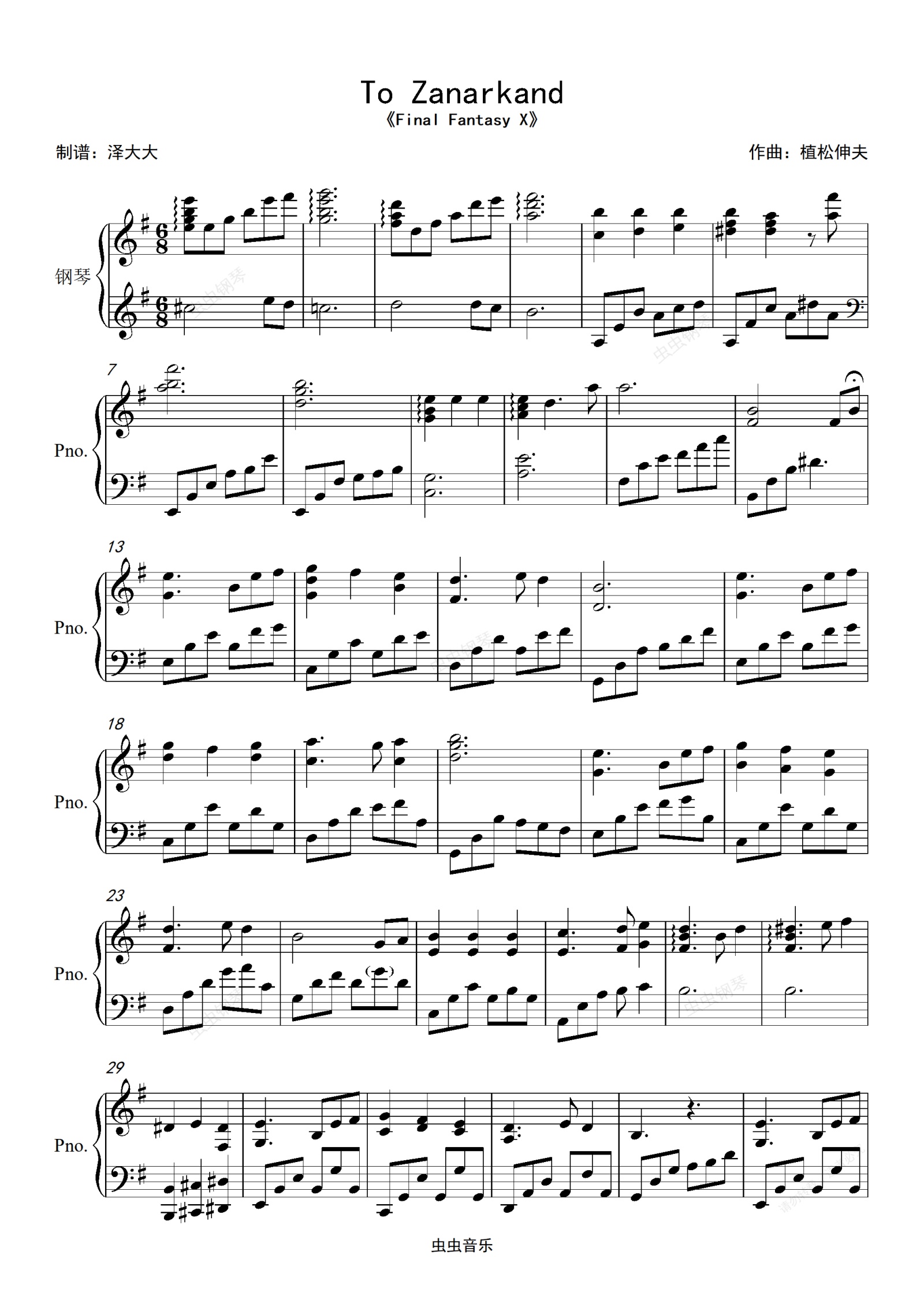 钢琴谱:《To Zanarkand》【最终幻想10插曲】