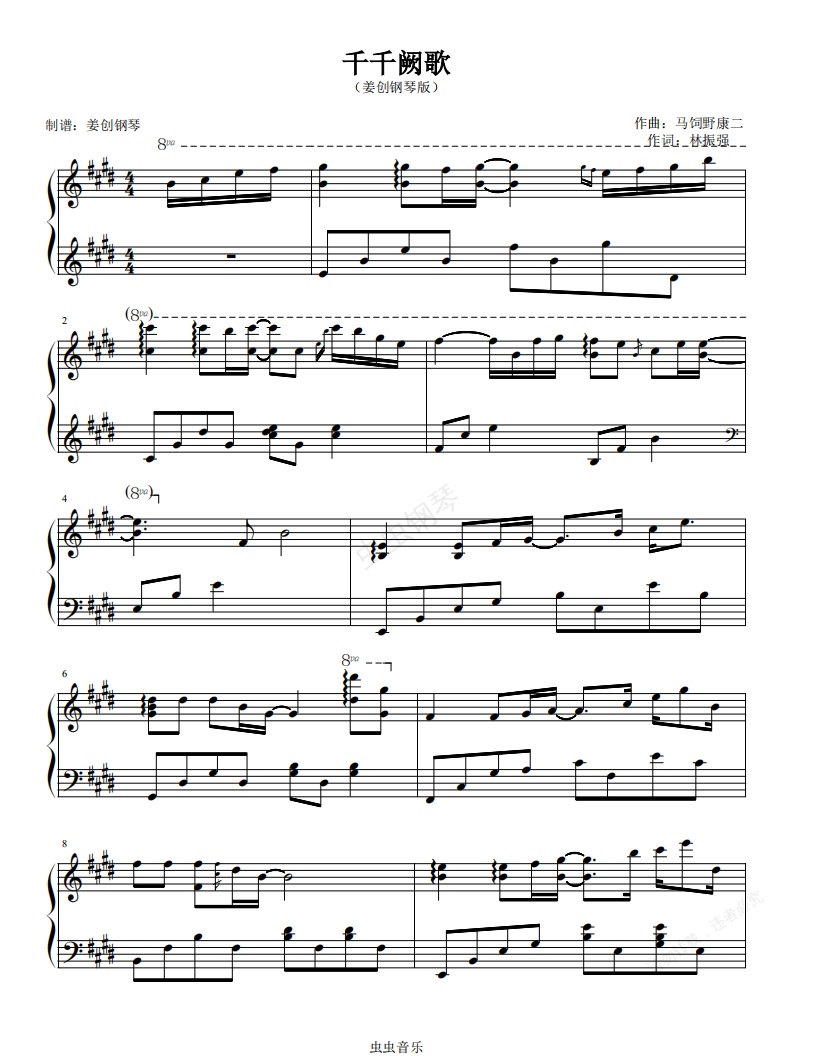 钢琴谱:《千千阙歌》完美演奏版