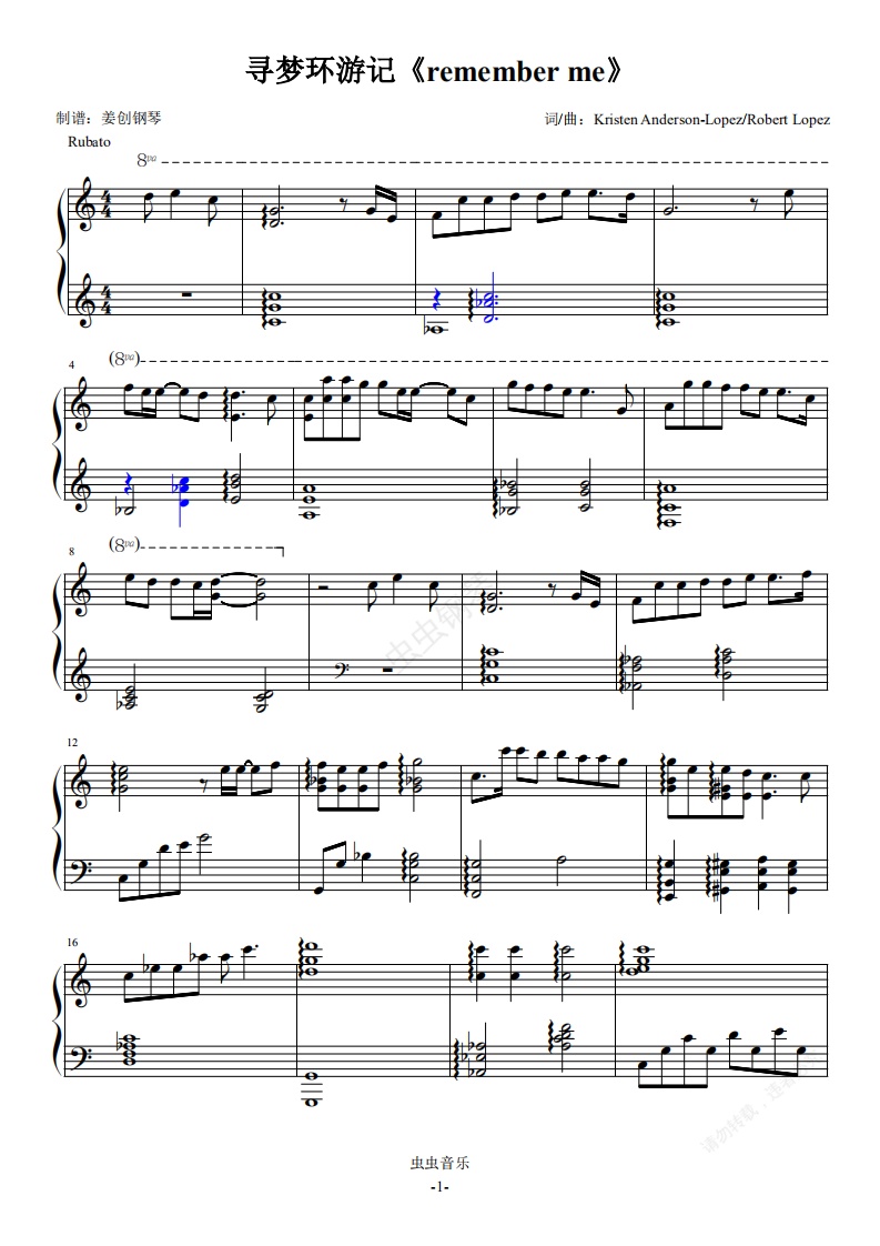钢琴谱:寻梦环游记《remember me》完美演奏版