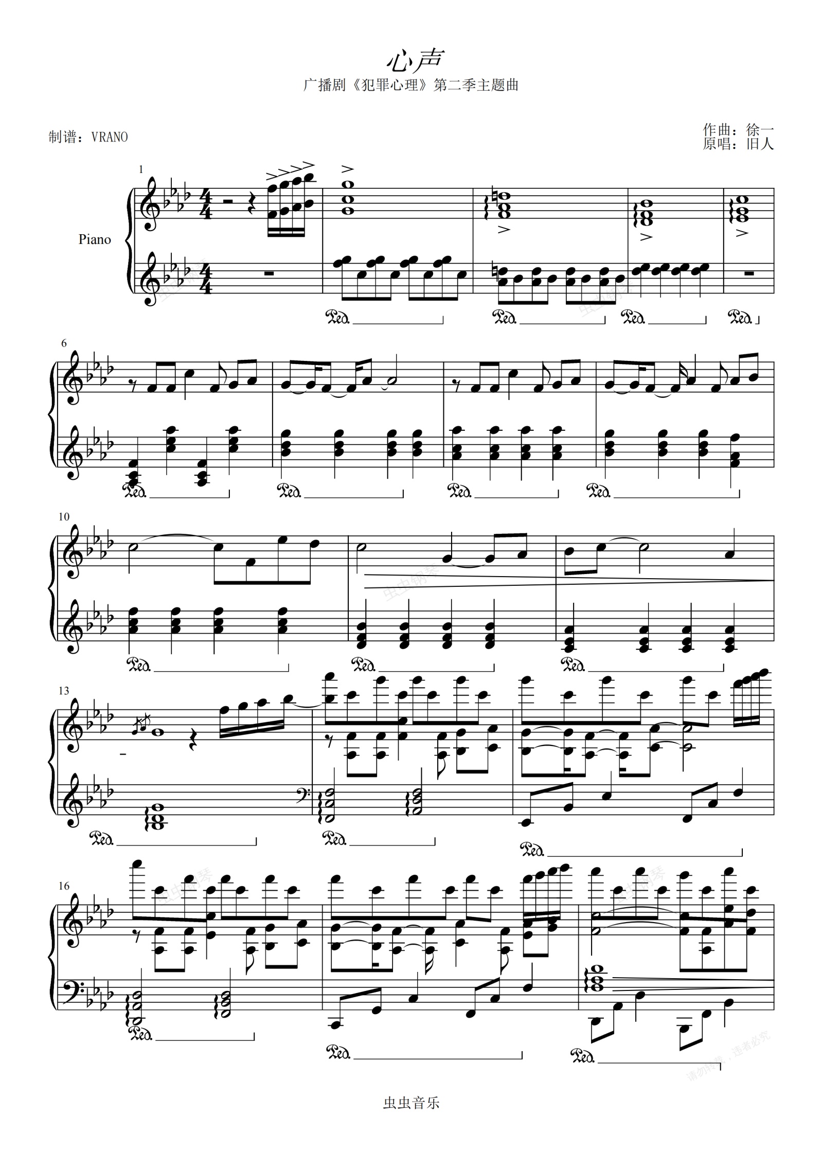 钢琴谱:心声--广播剧《犯罪心理》第二季主题曲