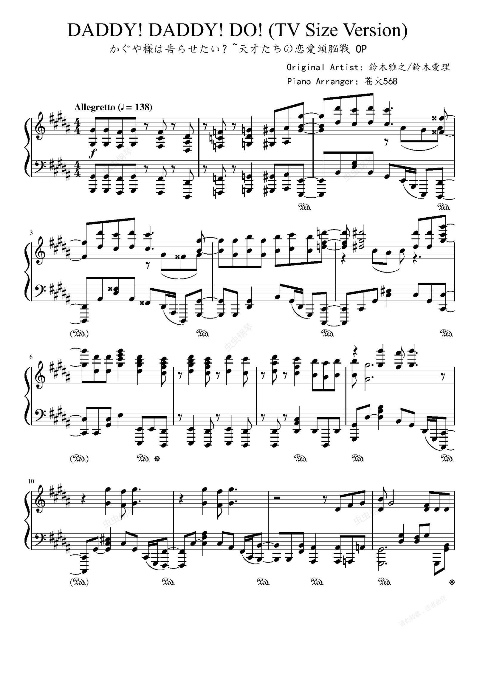 辉夜大小姐第二季OP DADDY! DADDY! DO! (T) 钢琴编配