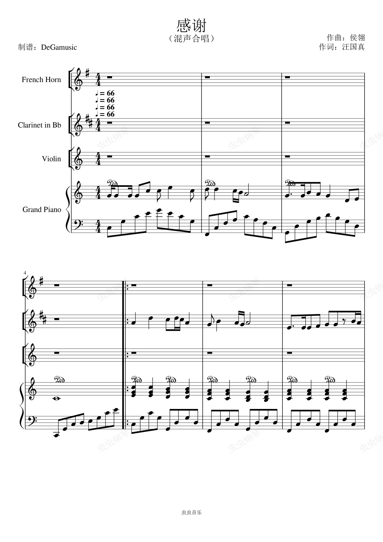 钢琴谱:感谢(四重奏)(又名:让我怎样感谢你)