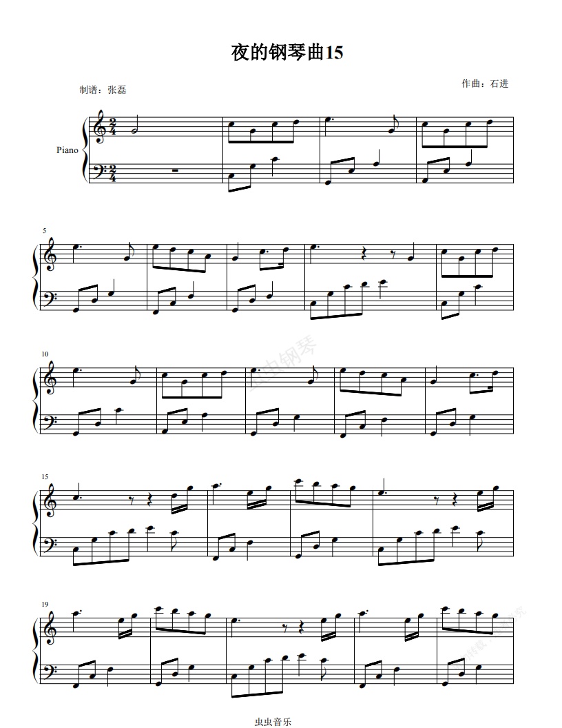 钢琴谱:夜的钢琴曲十五--石进--C大调