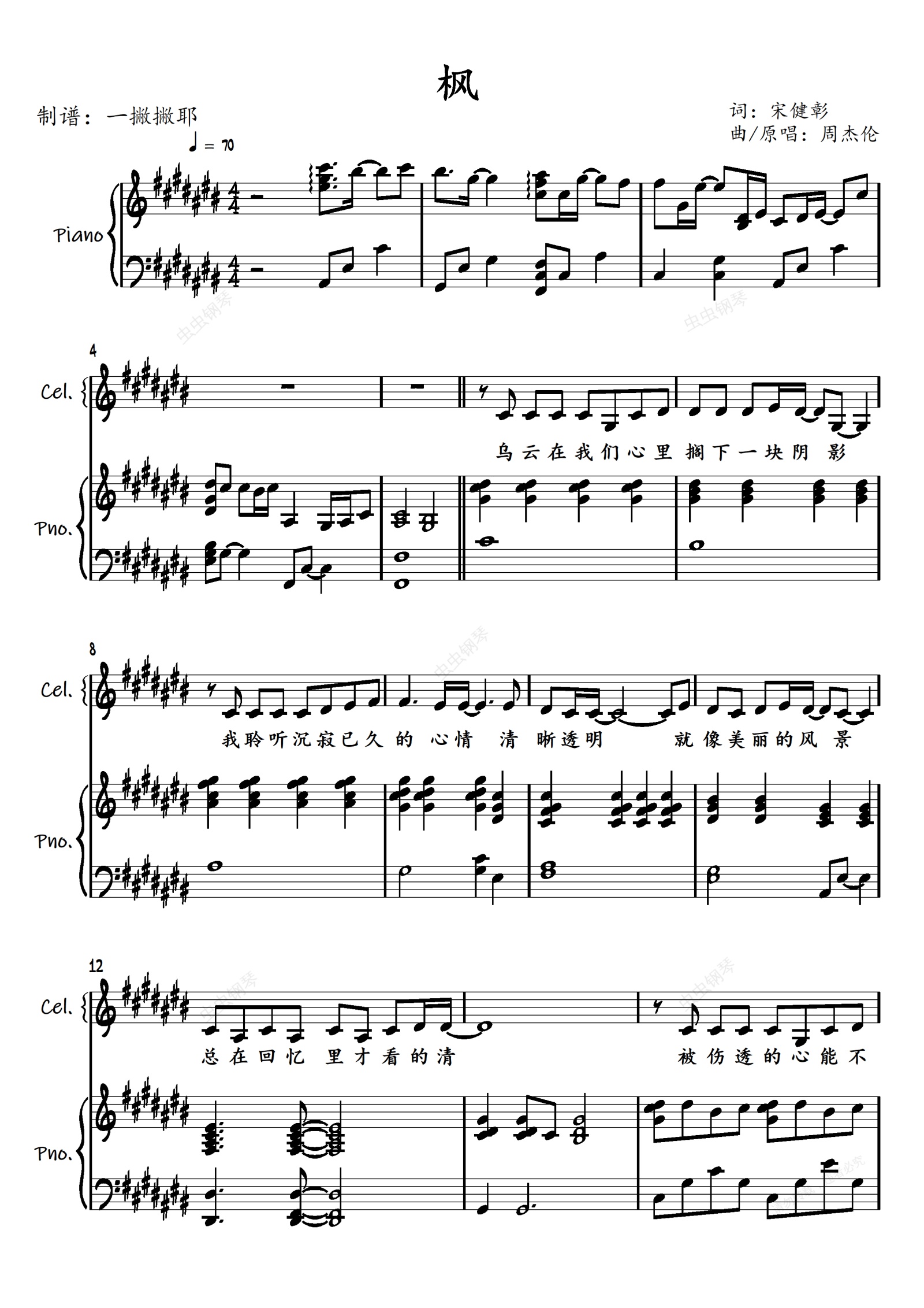 钢琴谱:枫【升调版弹唱谱】周杰伦「一撇撇耶」