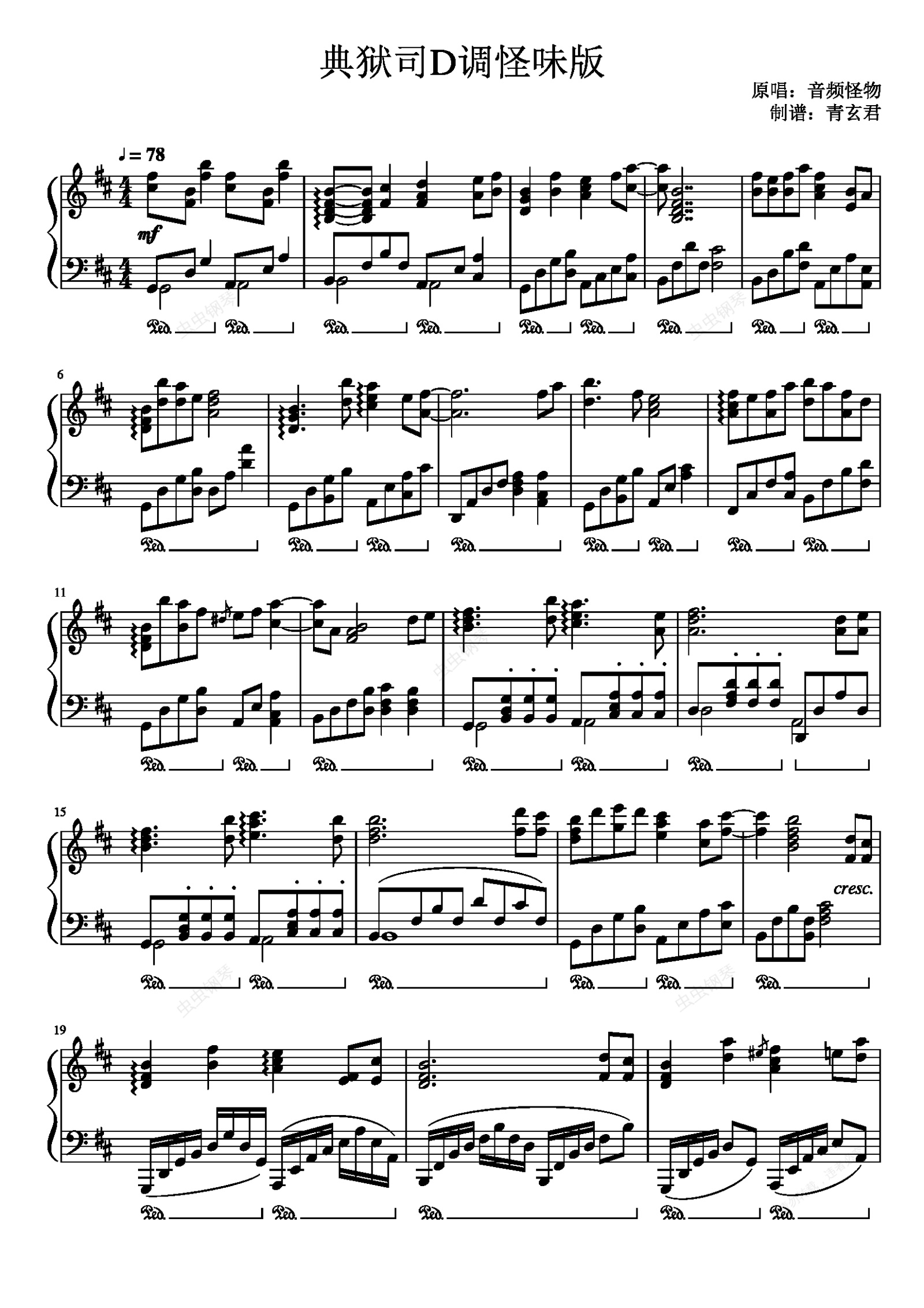 钢琴谱:典狱司D调怪味版
