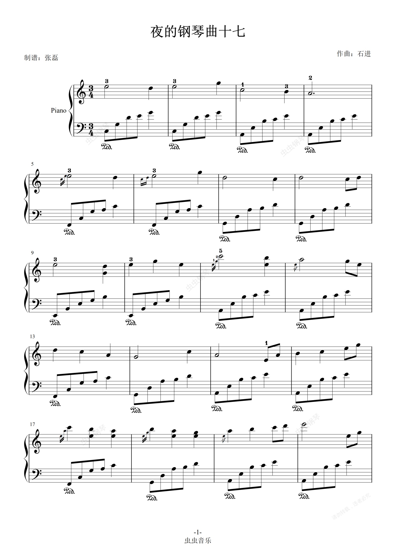 钢琴谱:夜的钢琴曲十七--石进--C大调