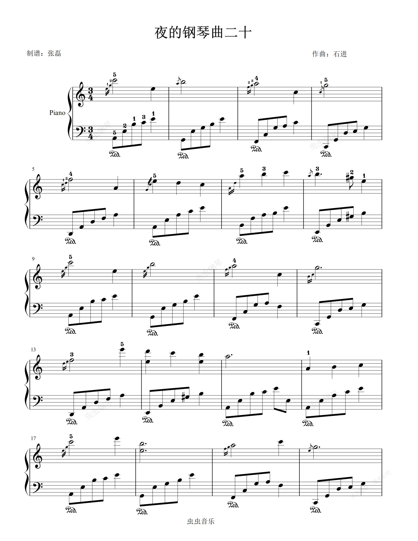 钢琴谱:夜的钢琴曲二十--石进--C大调