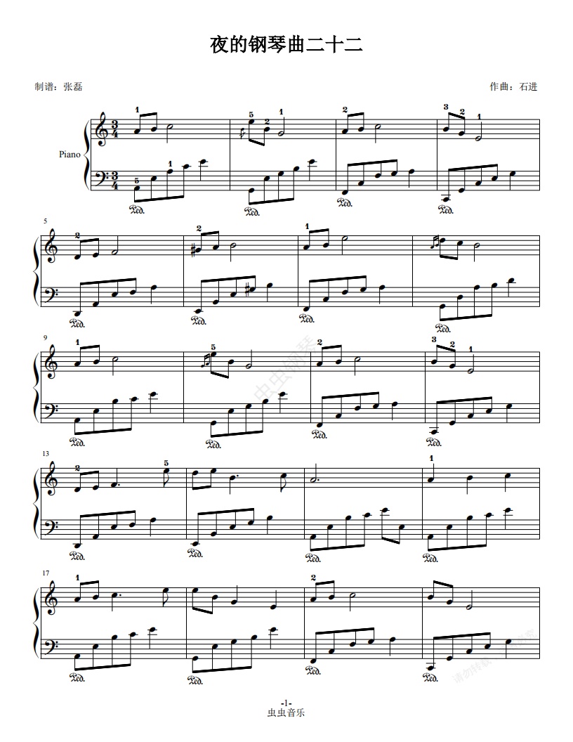 钢琴谱:夜的钢琴曲二十二--石进--C大调