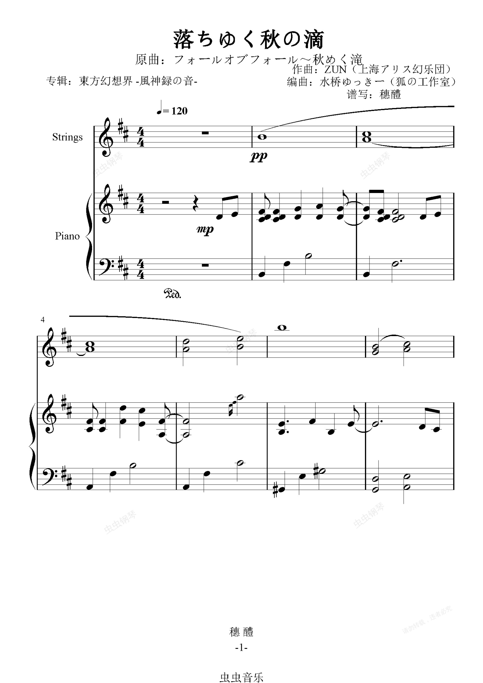 钢琴谱:落ちゆく秋の滴(原曲:フォールオブフォール~秋めく滝)