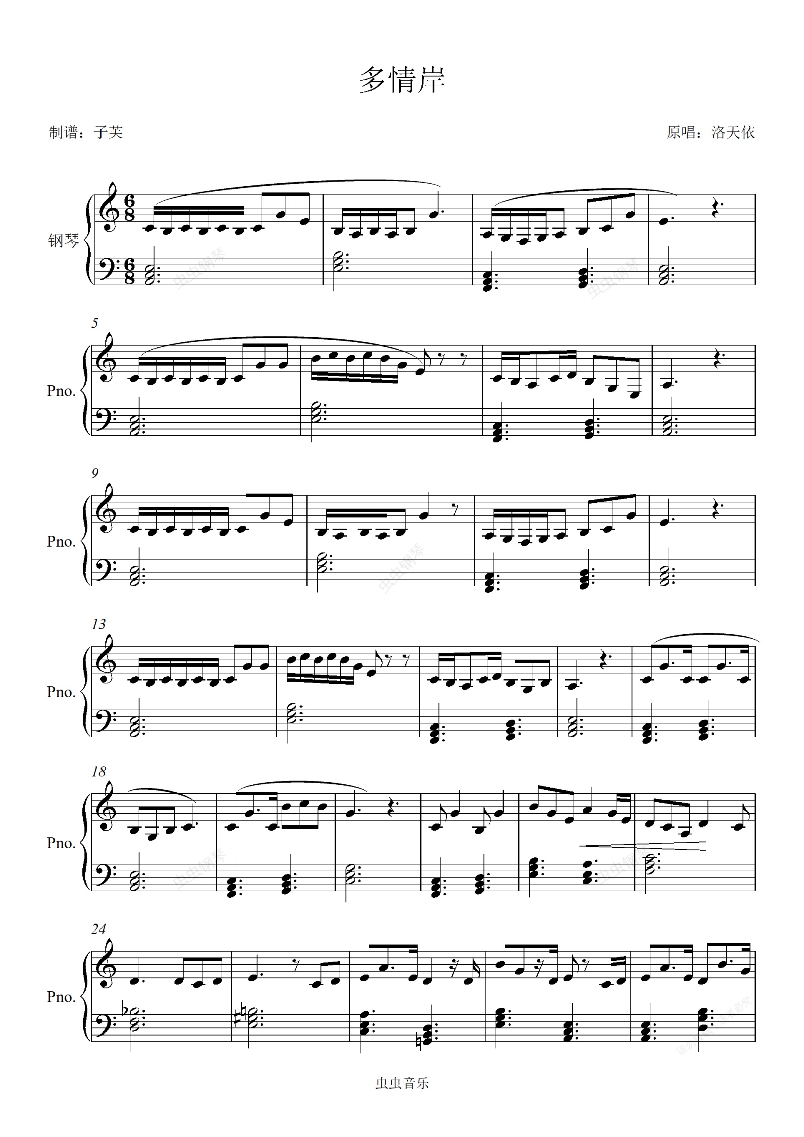 钢琴谱:多情岸-洛天依