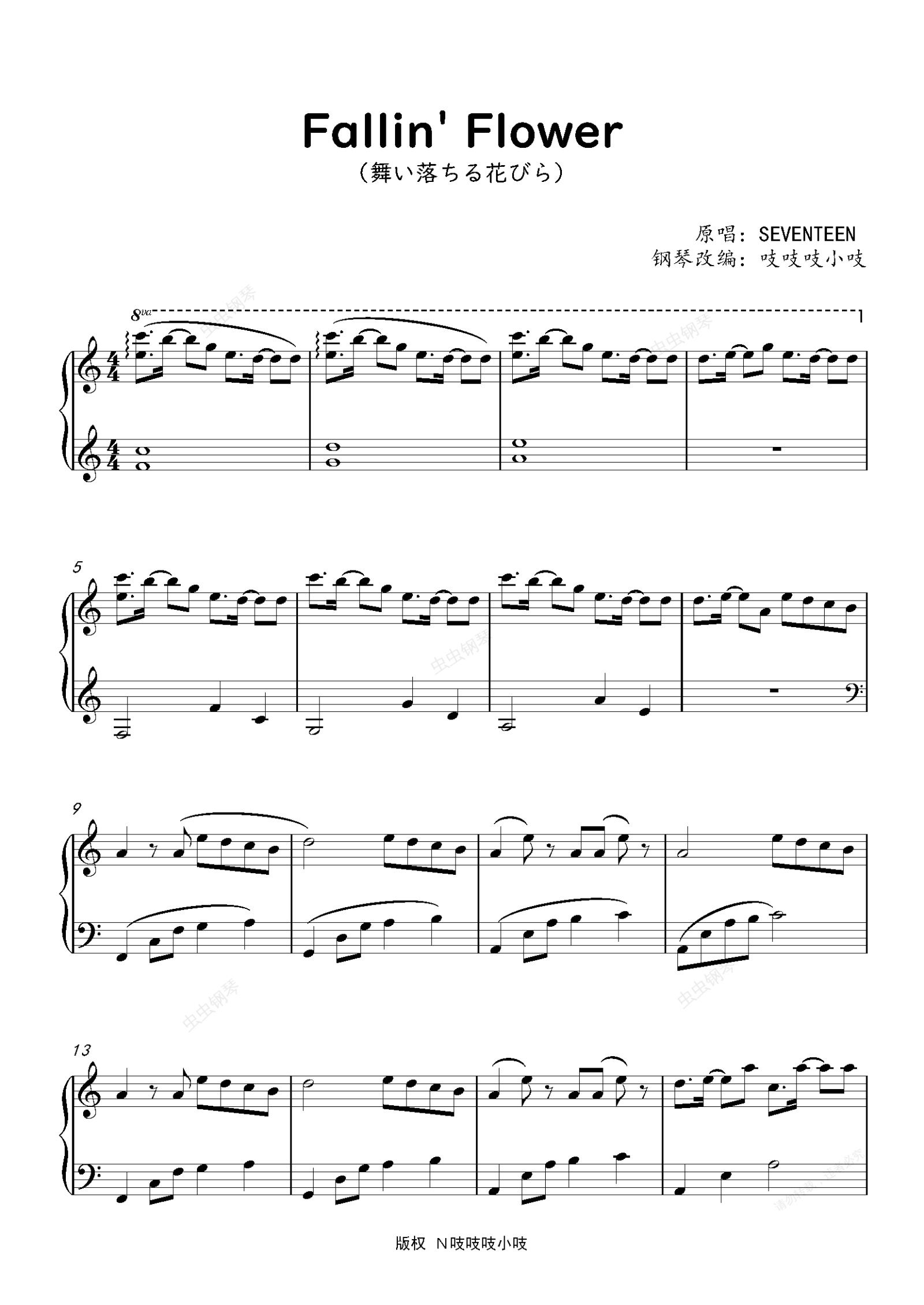 钢琴谱:Fallin Flower(舞い落ちる花びら)