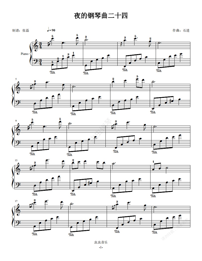钢琴谱:夜的钢琴曲二十四--石进--C大调