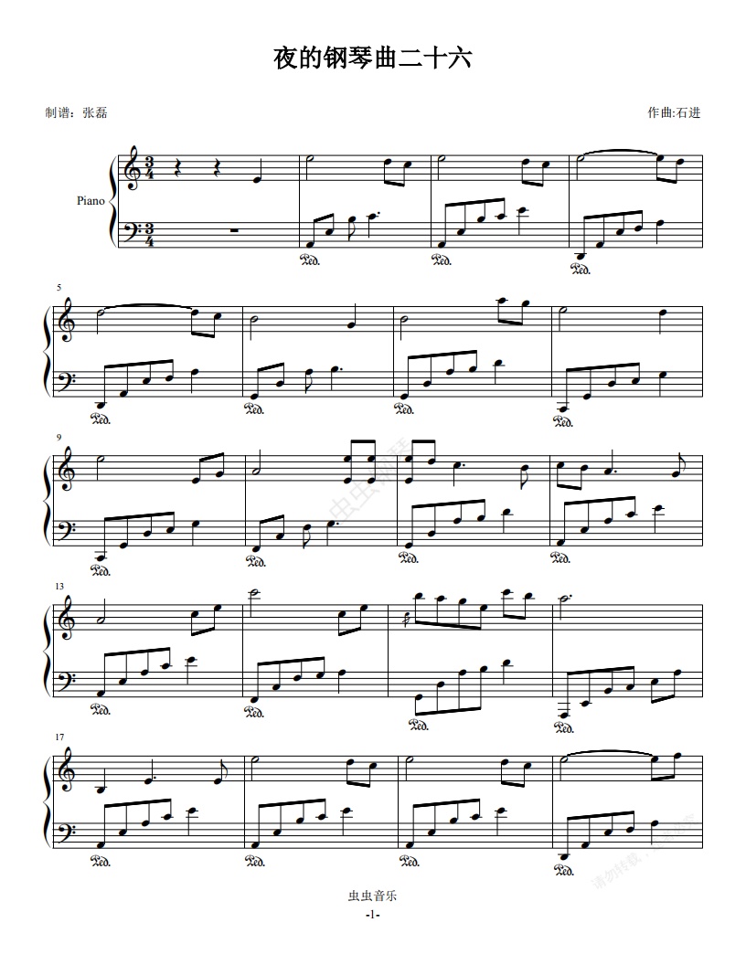 钢琴谱:夜的钢琴曲二十六--石进--C大调