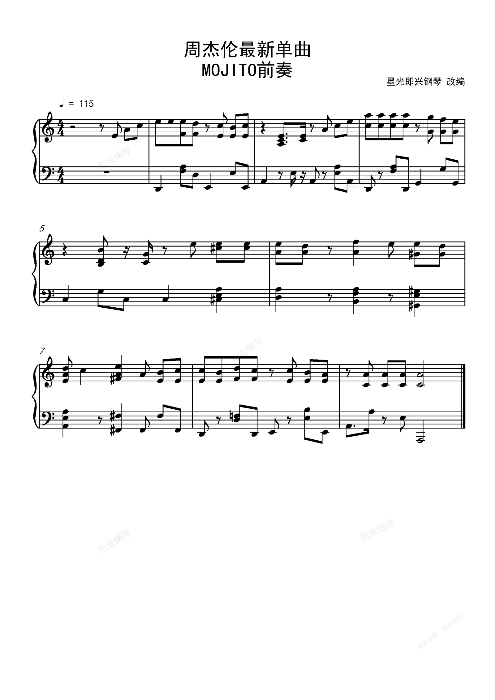 钢琴谱:【MOJITO】周杰伦最新单曲 前奏