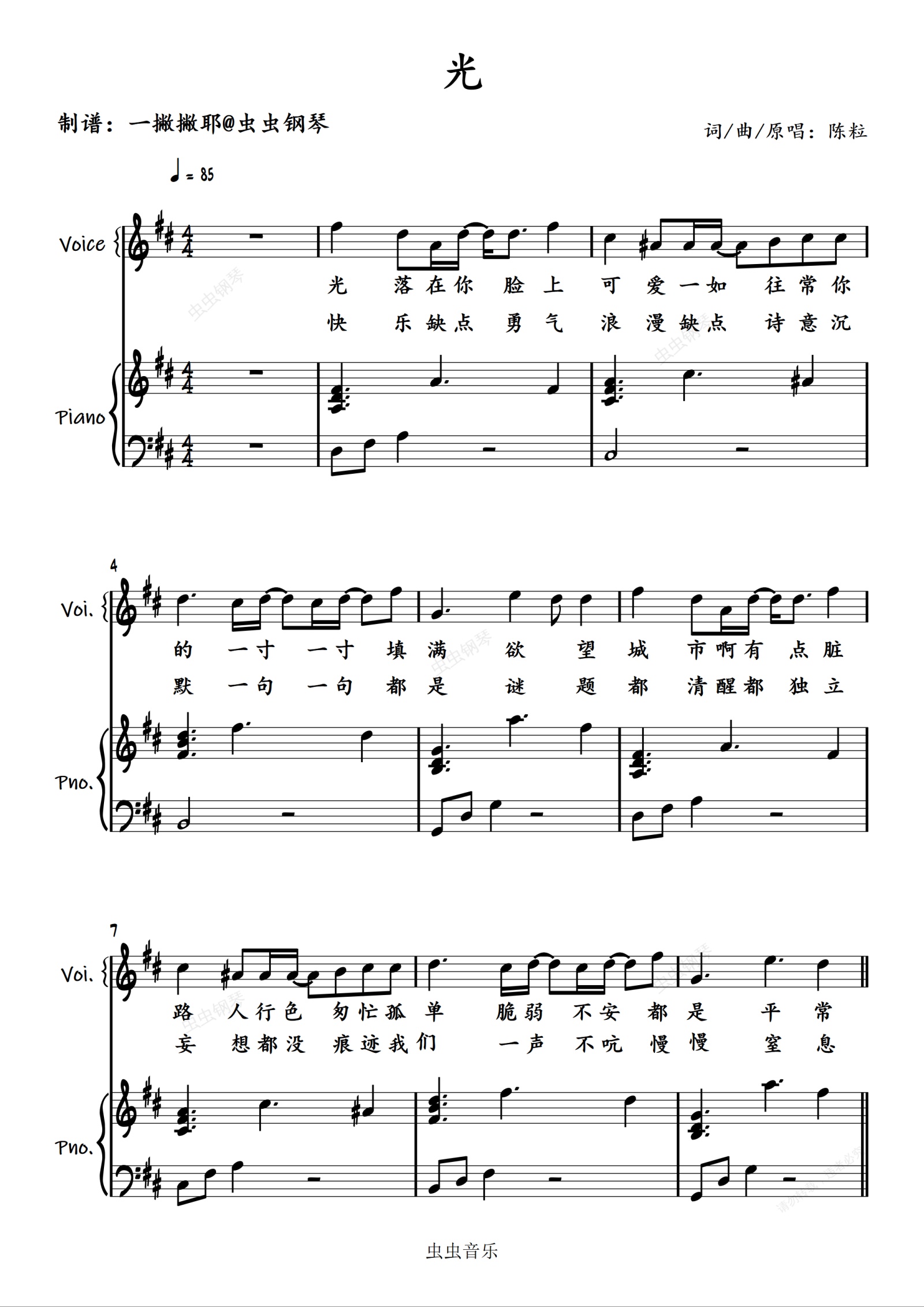 钢琴谱:光【弹唱谱】陈粒「一撇撇耶」