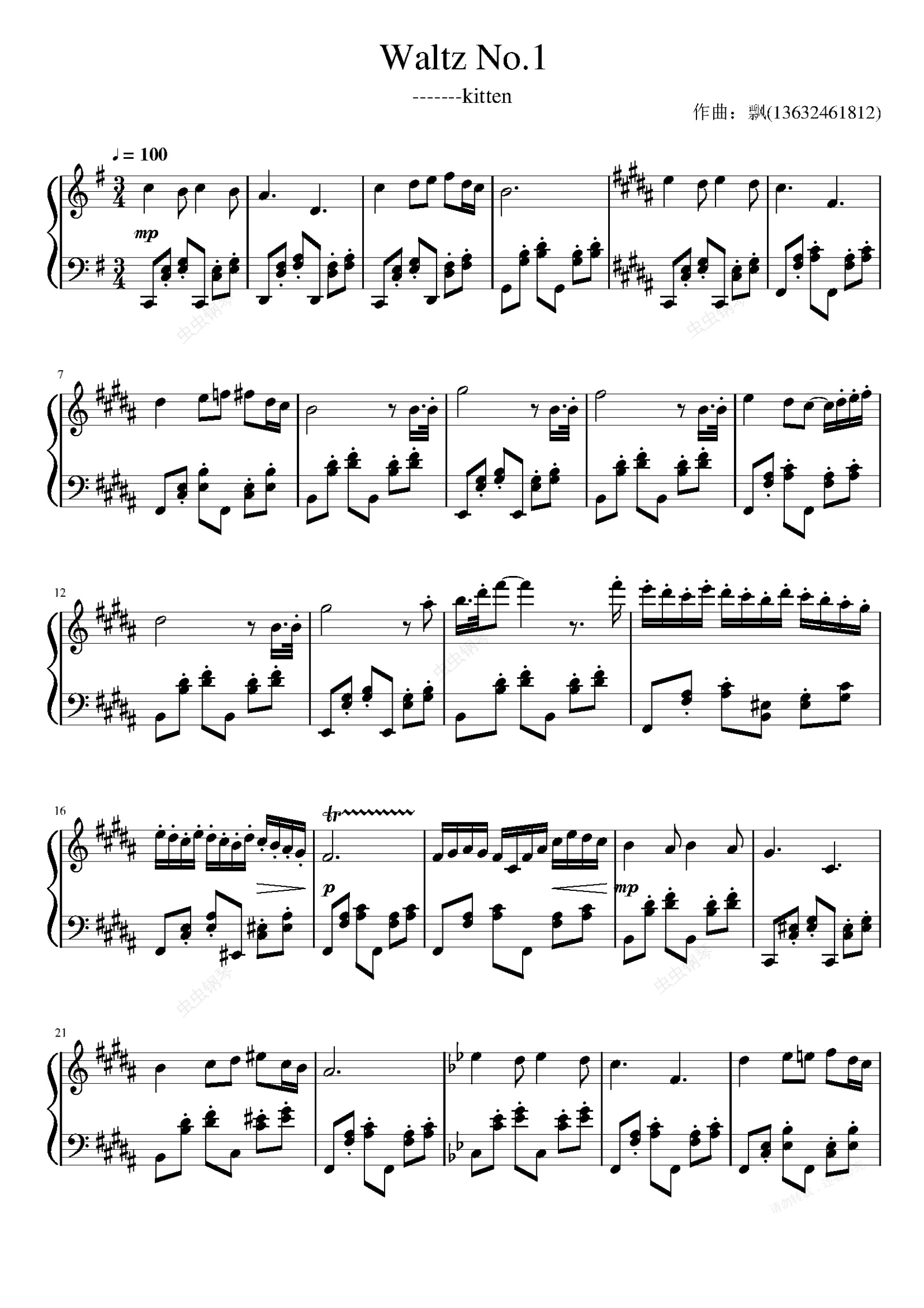 钢琴谱:爷的原创圆舞曲No.1_"小猫"