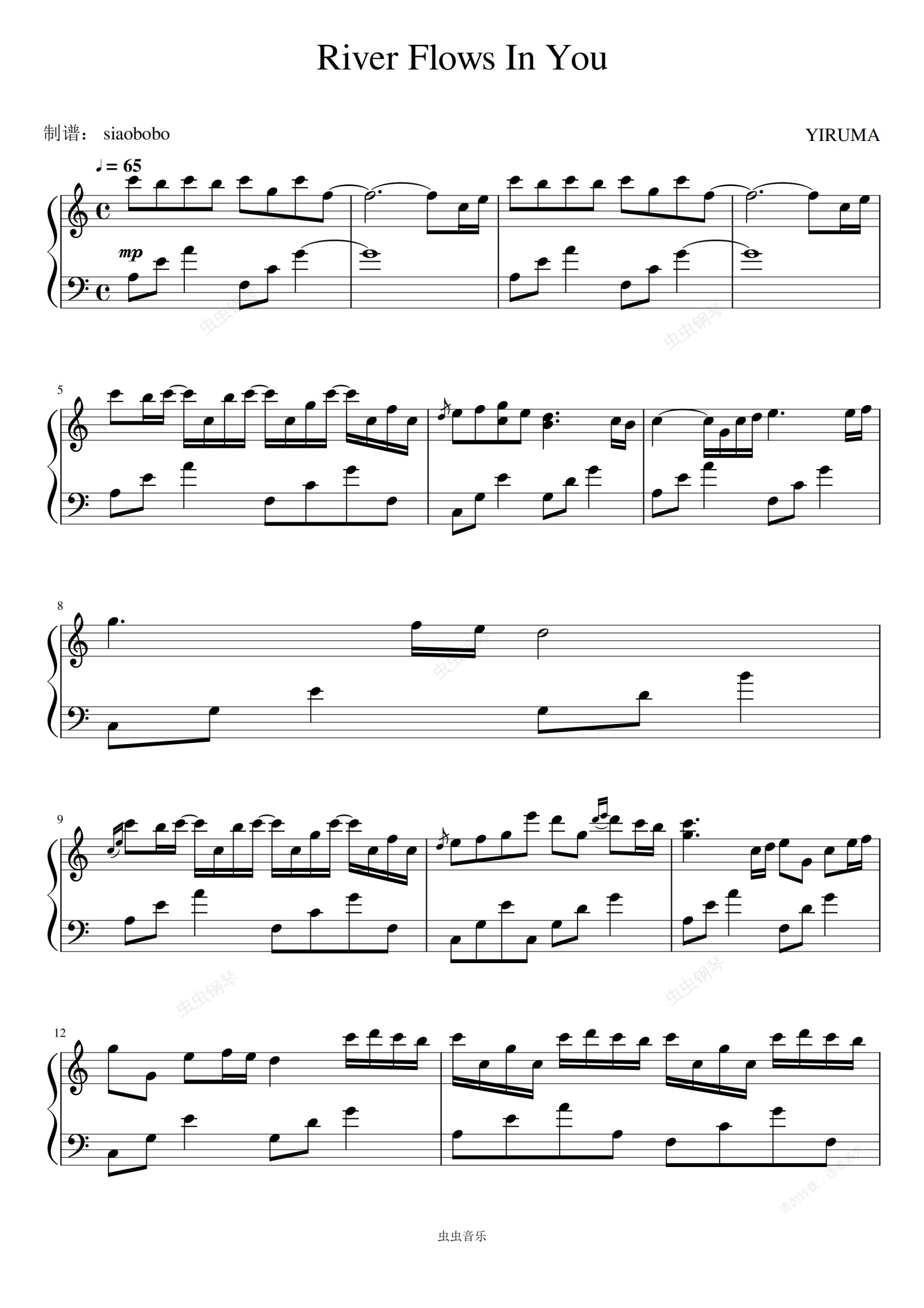 钢琴谱:River Flows In You(你的心河)