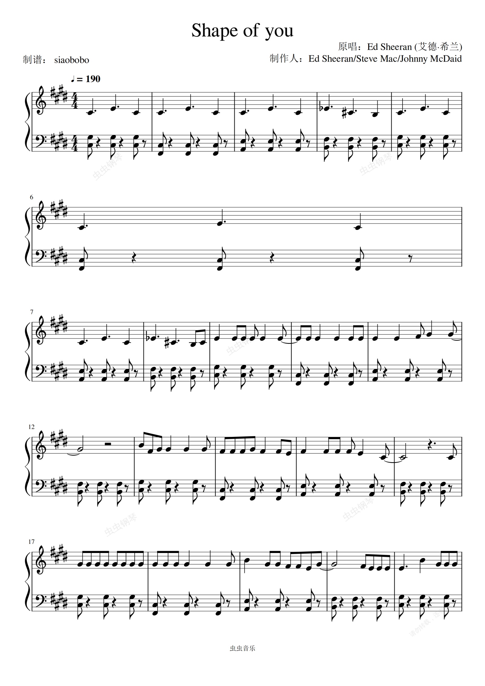 钢琴谱:Shape of You