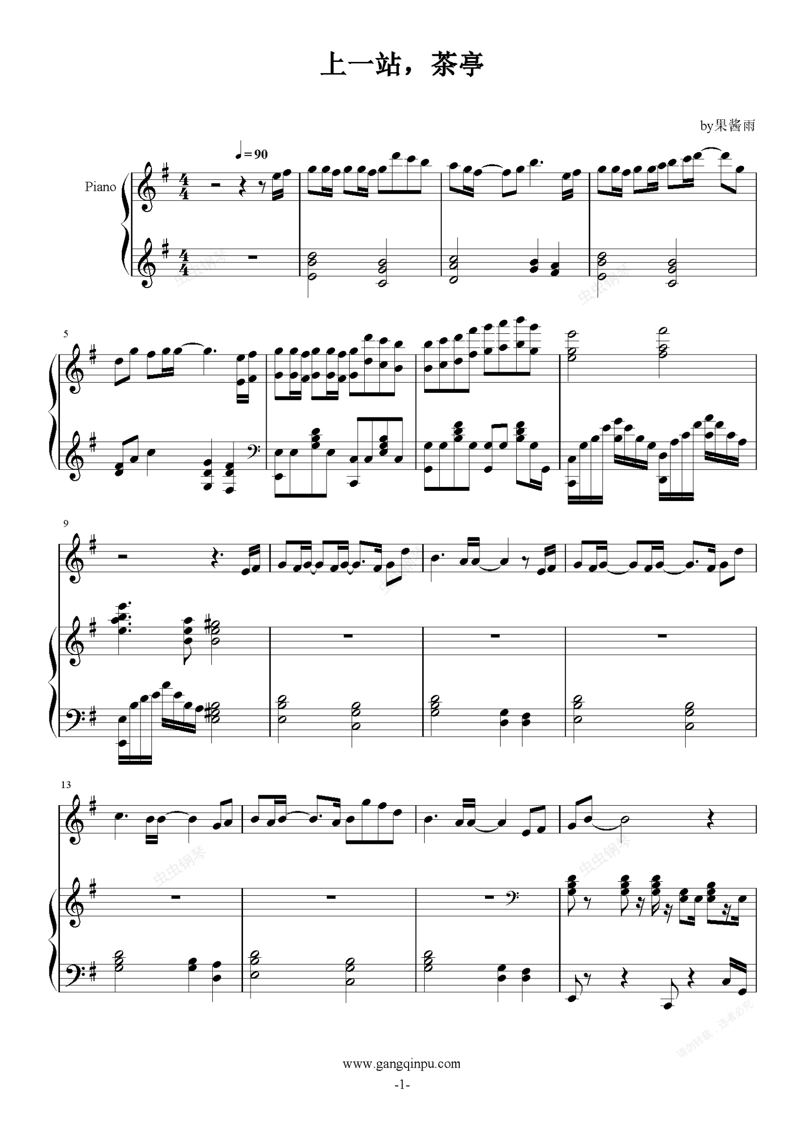 钢琴谱:上一站,茶亭-弹唱谱