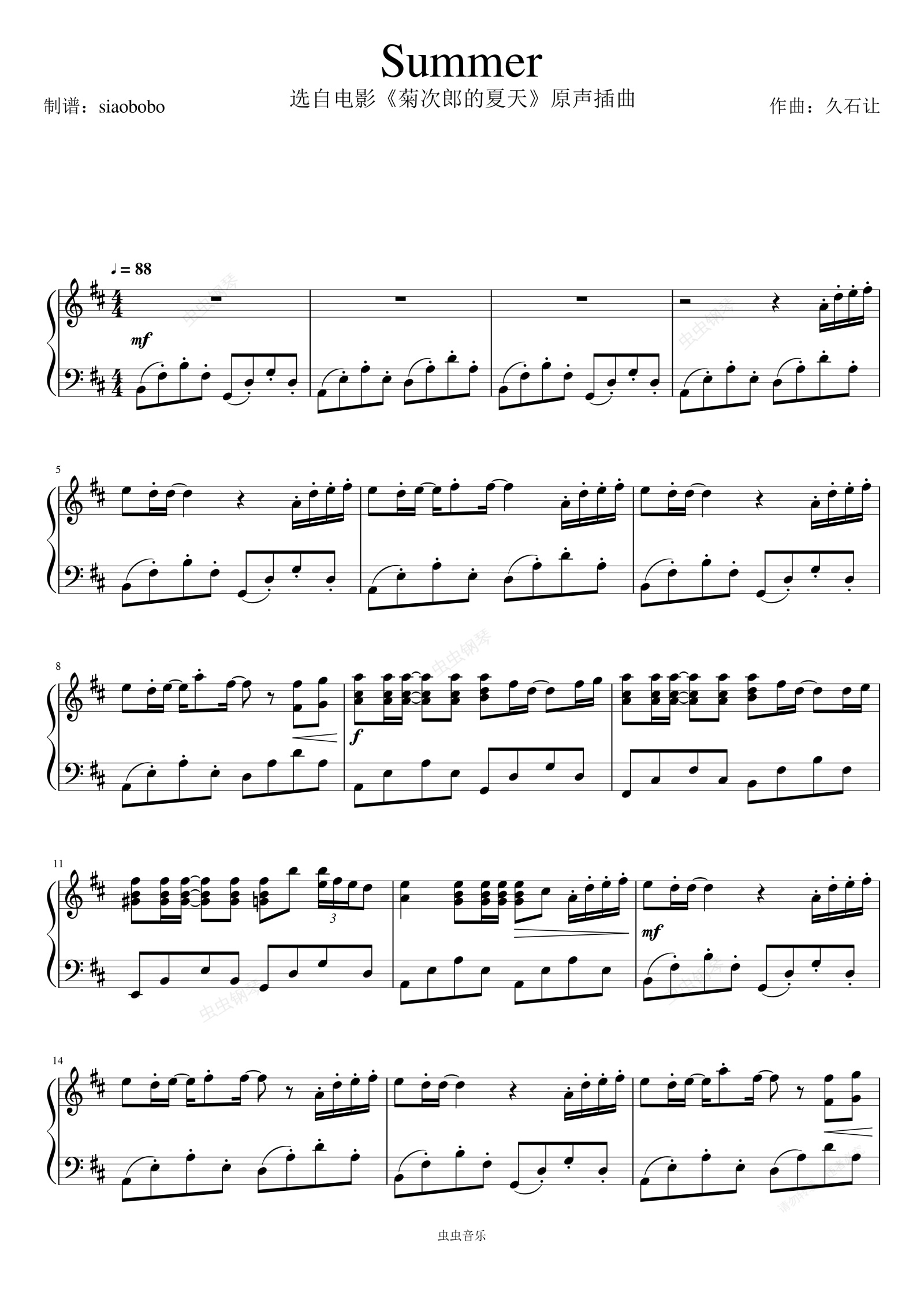 钢琴谱:Summer ——选自电影《菊次郎的夏天》原声主题曲
